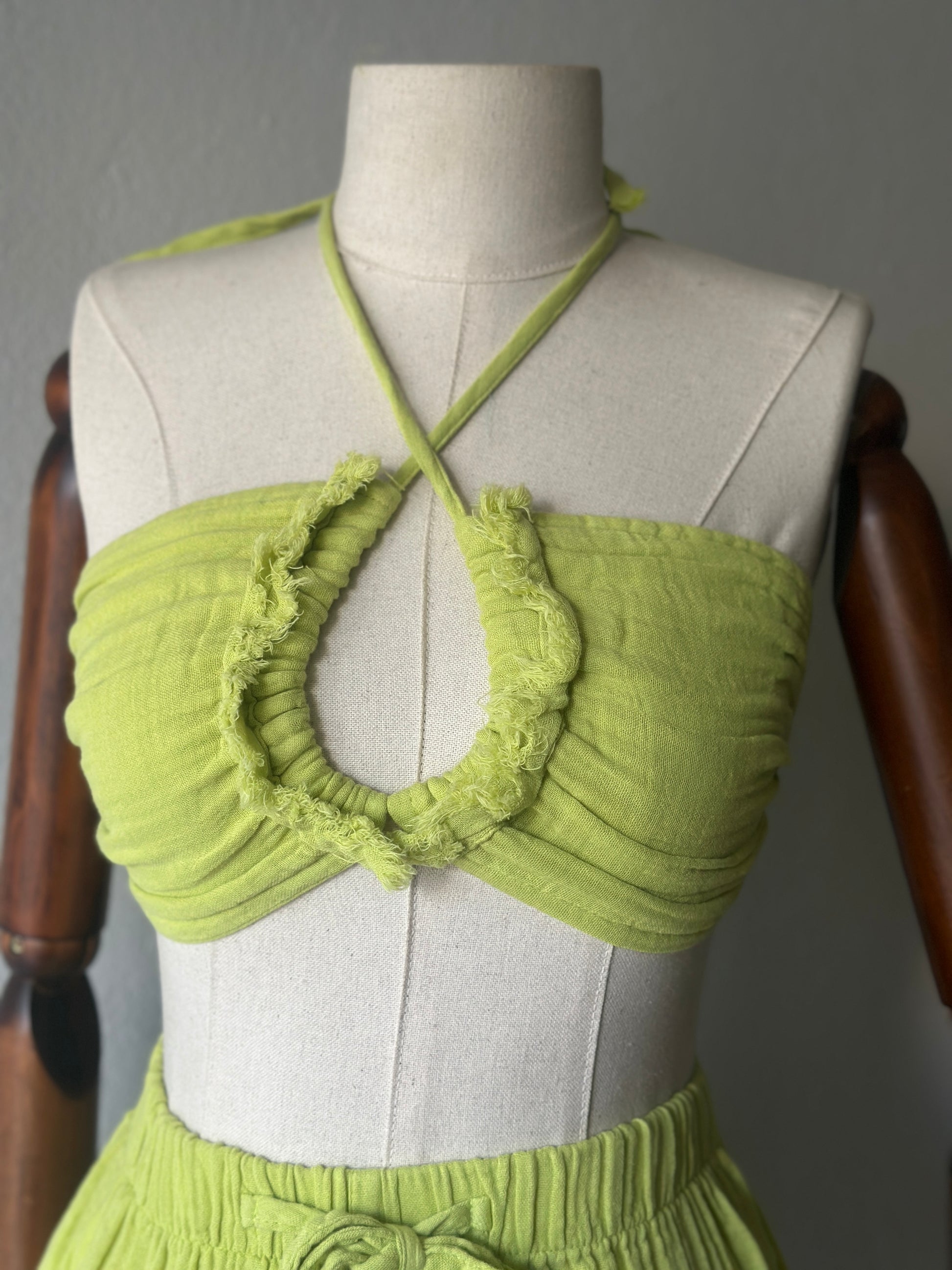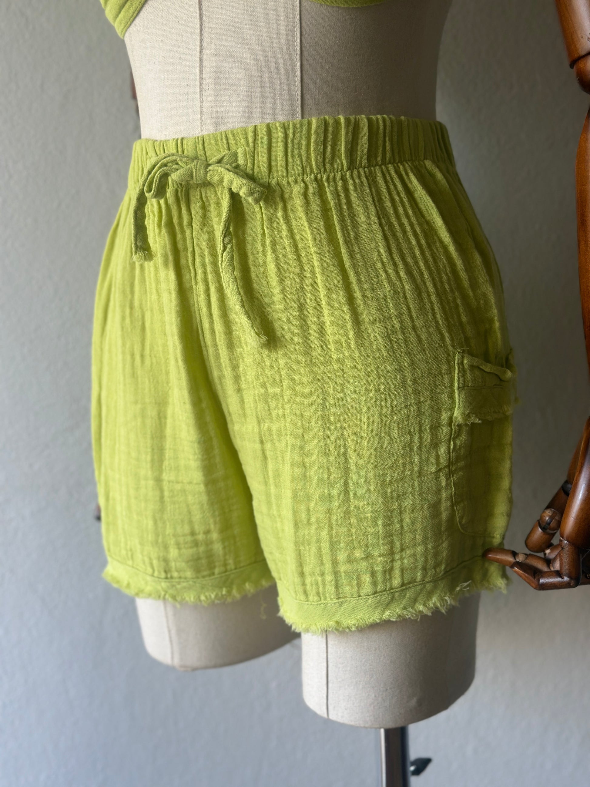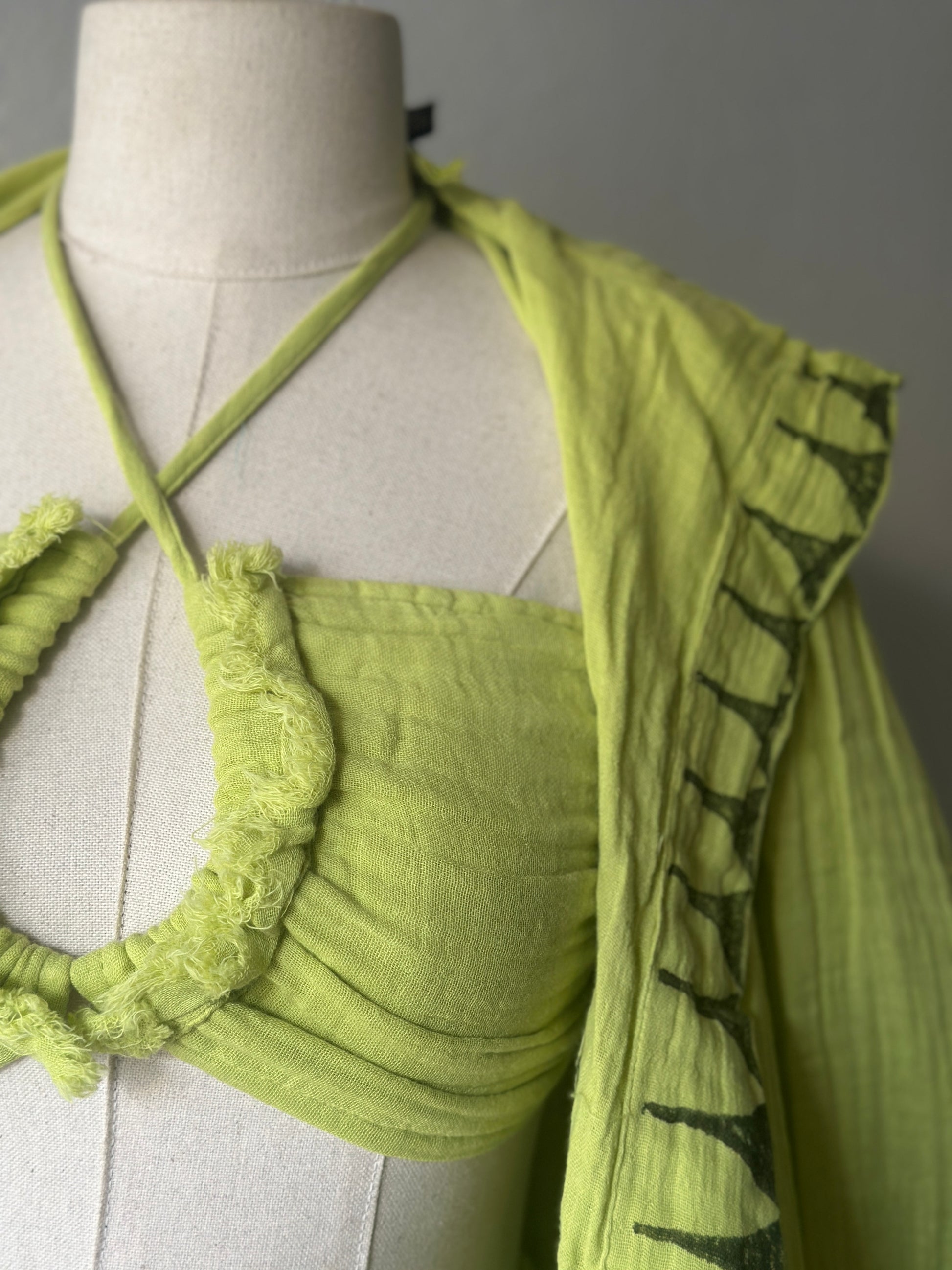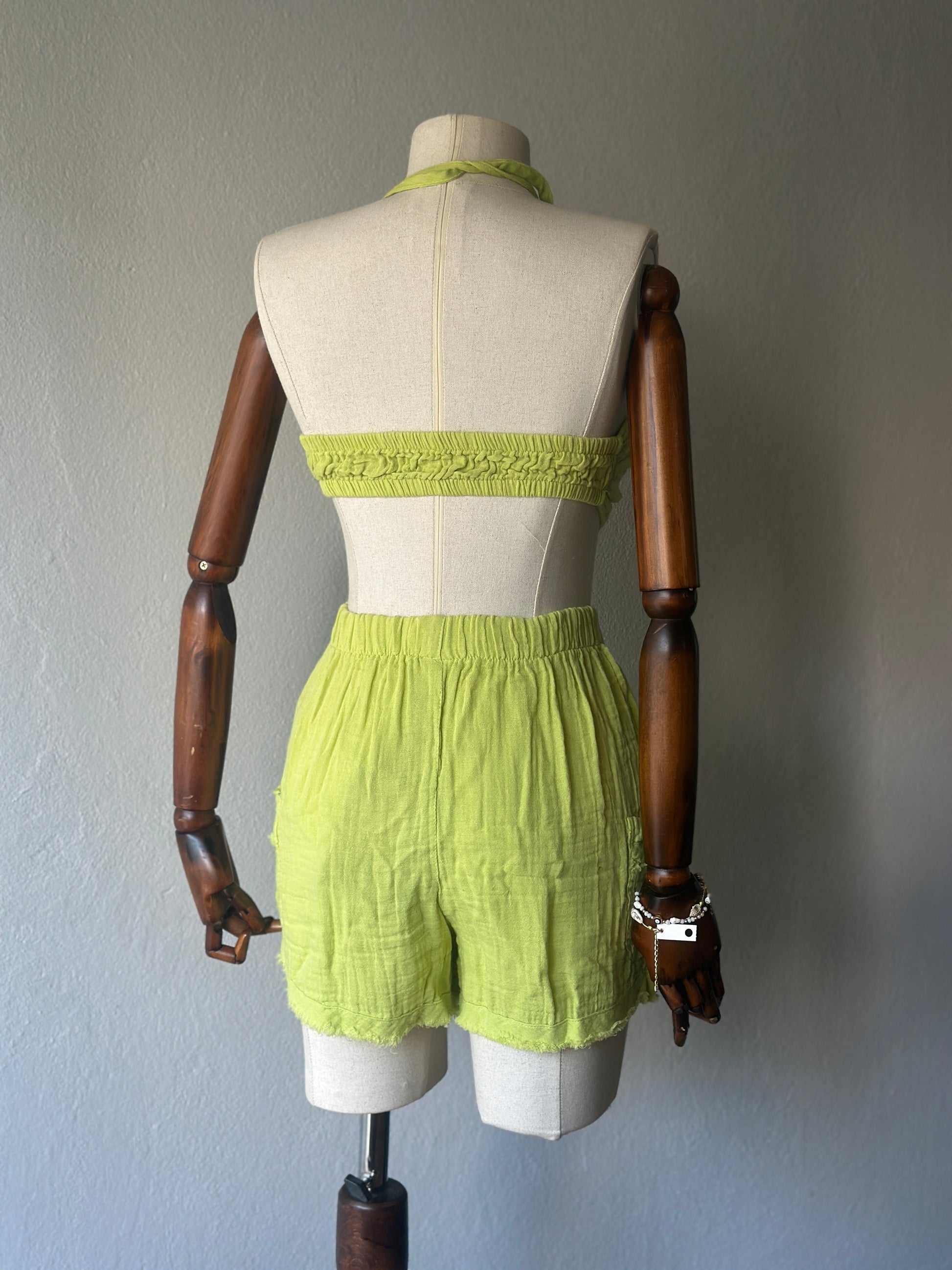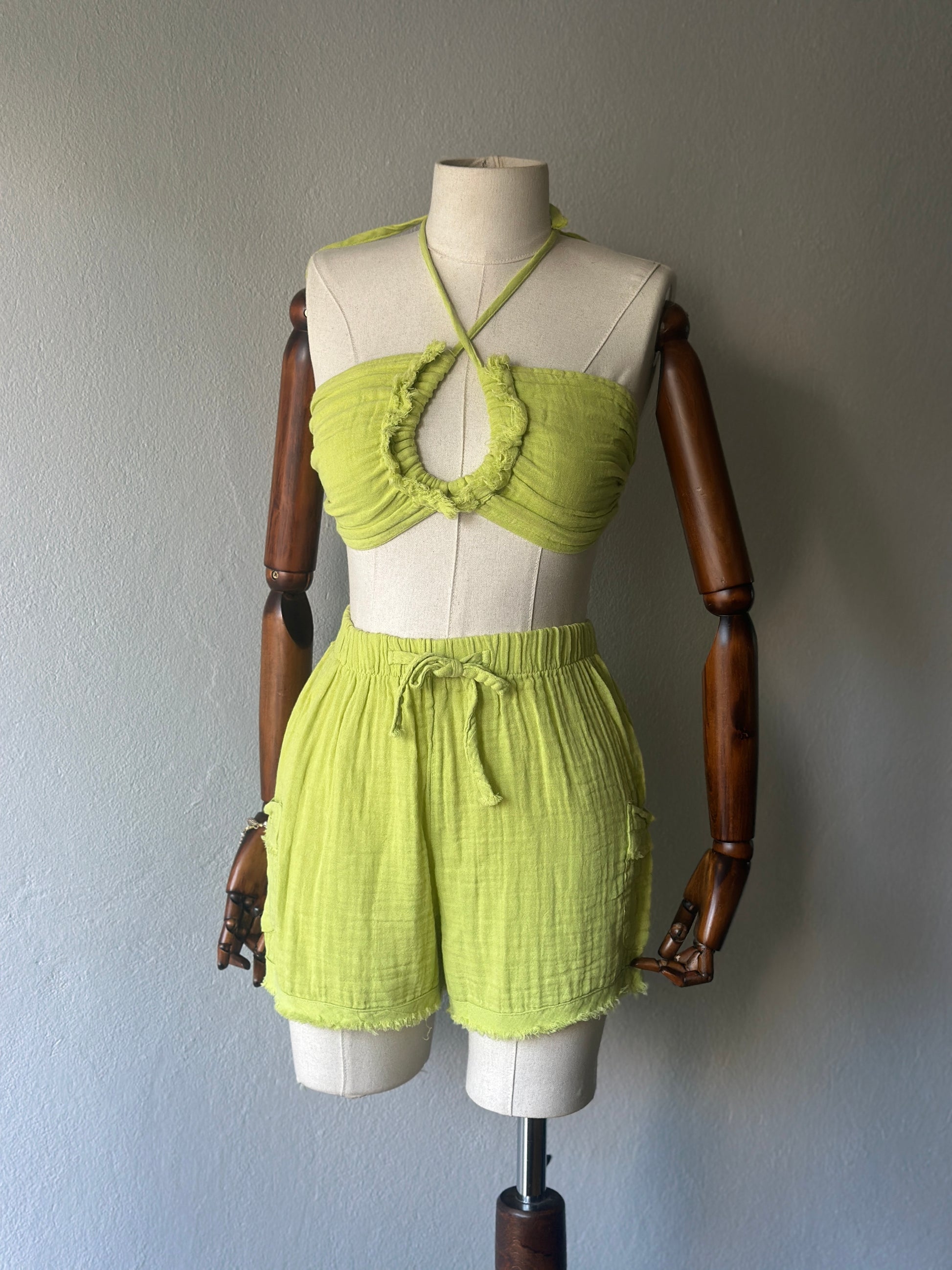 Özel Tasarım 3’lü Takım Kimono+büstiyer+şort - Fıstık yeşili