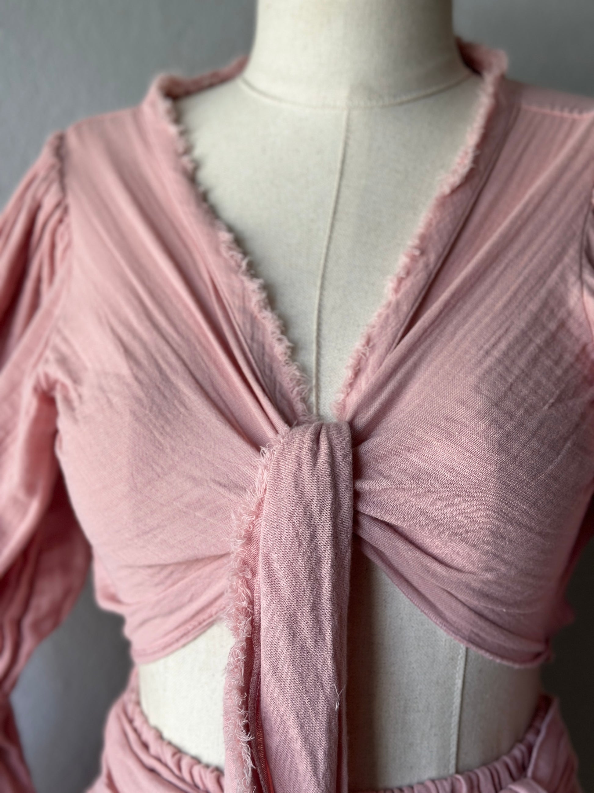 Bağlamalı bluz önden ve arkadan bağlanabilir. STANDART beden. (34-40)