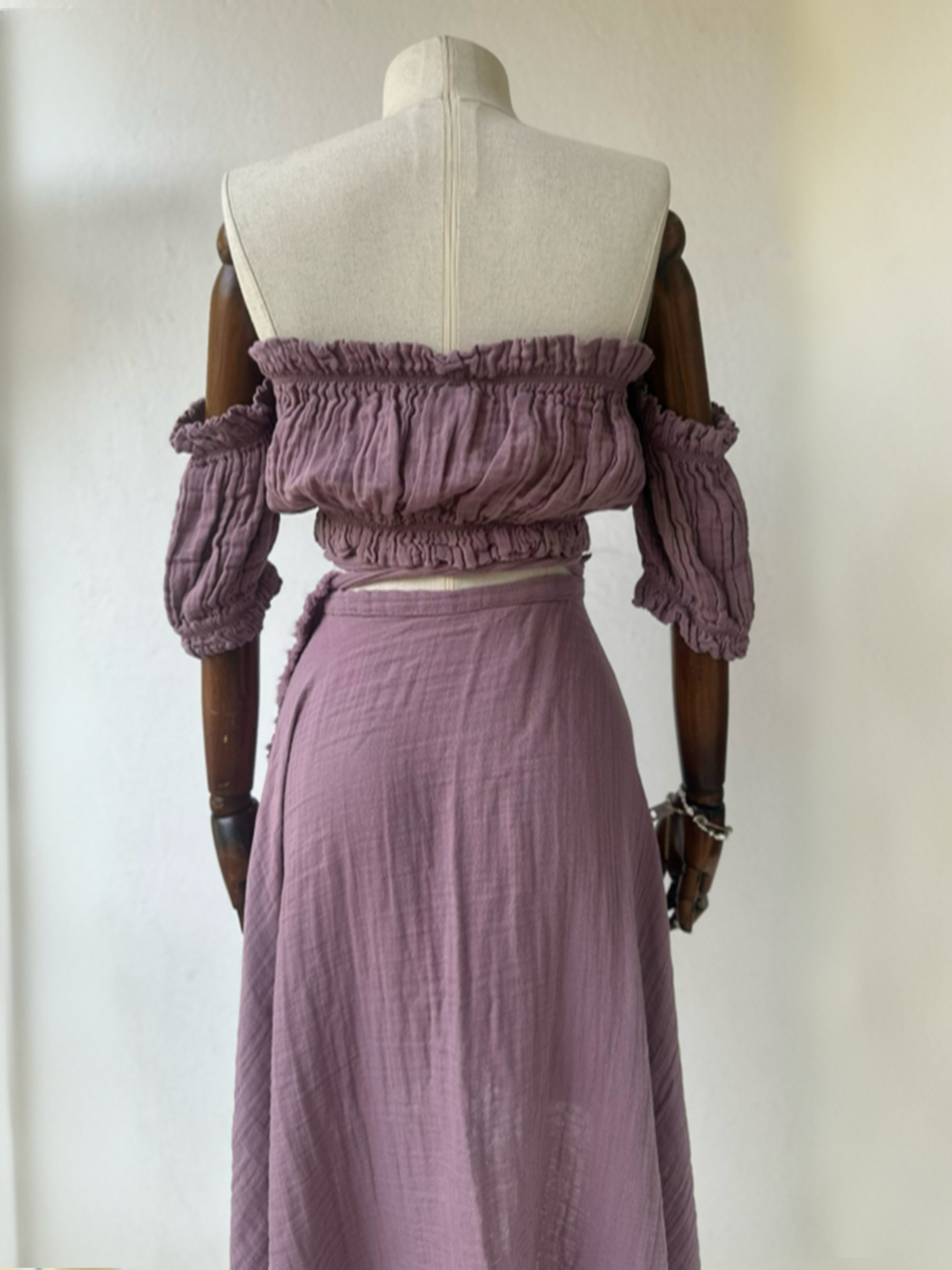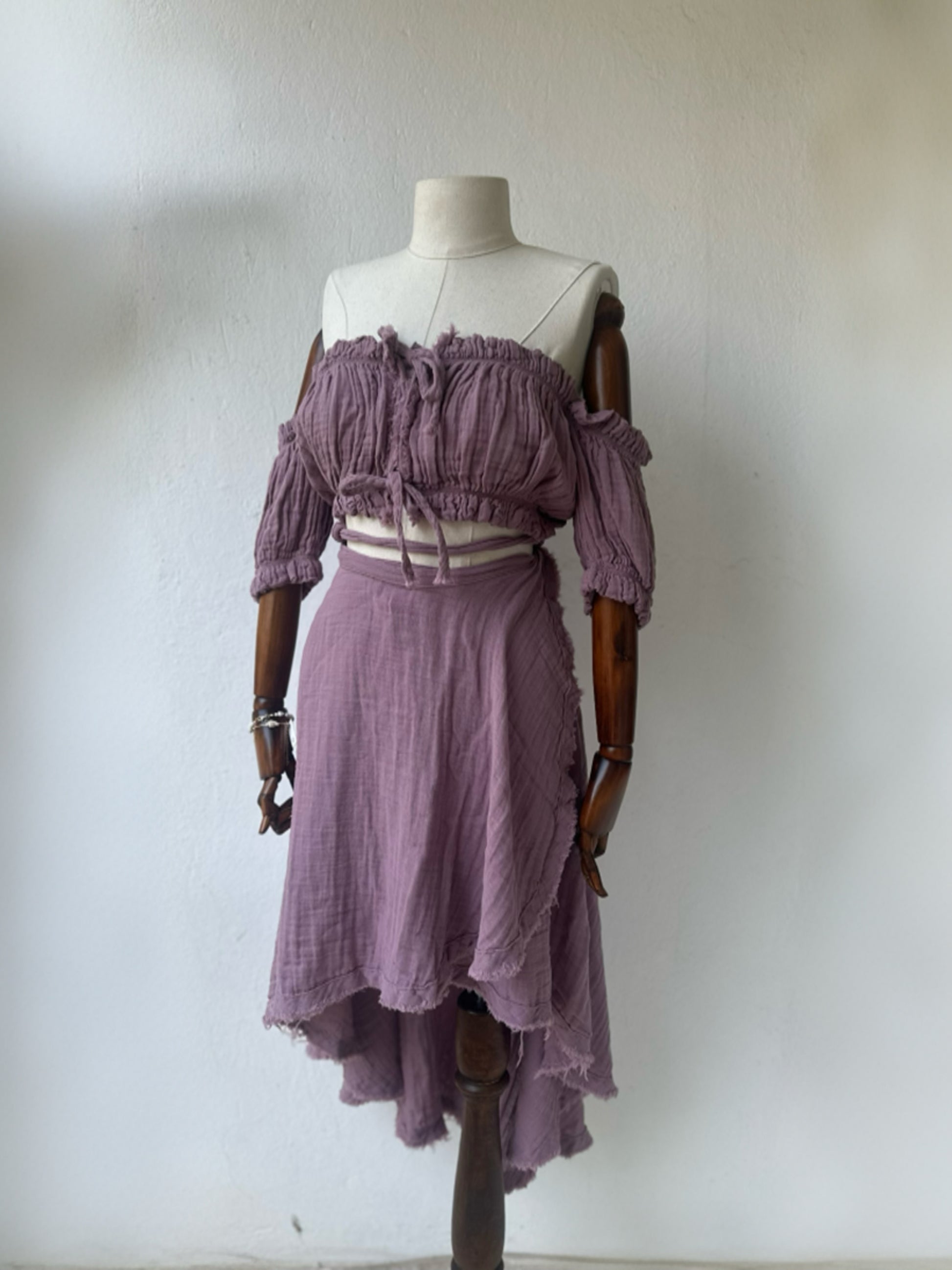 • Parçalar: Mini lastikli bluz + pareo etek (ön kısa – arka uzun)