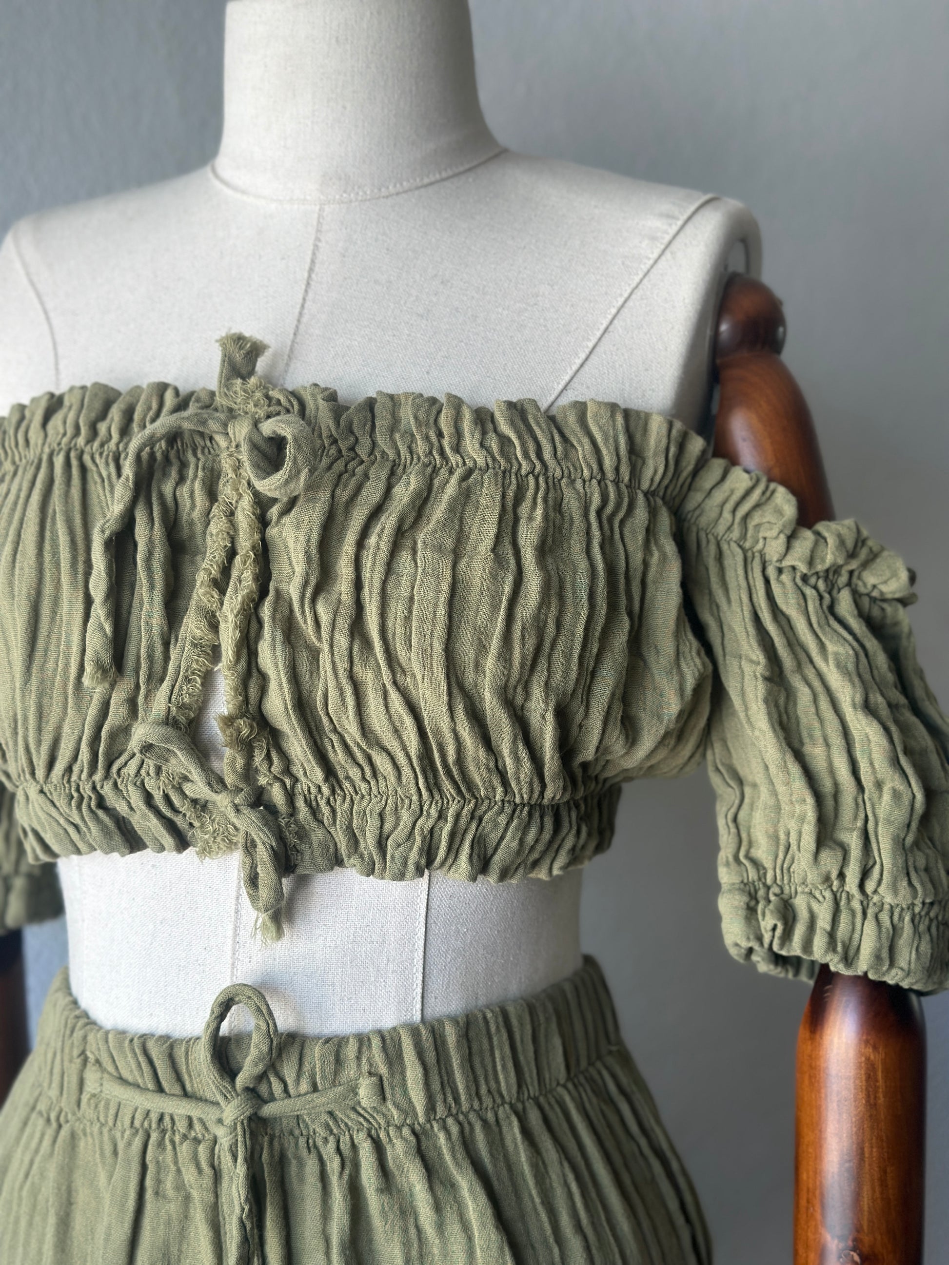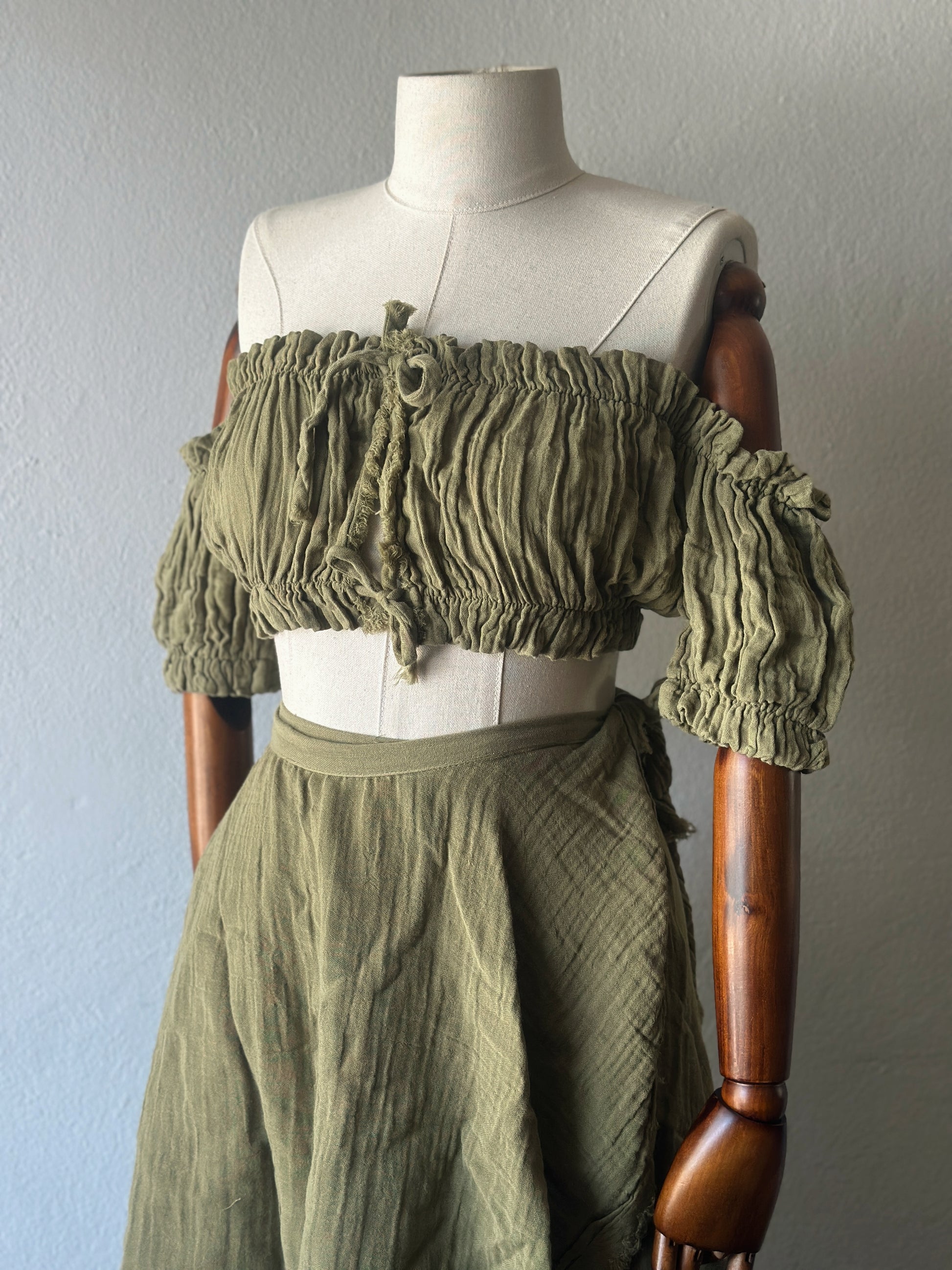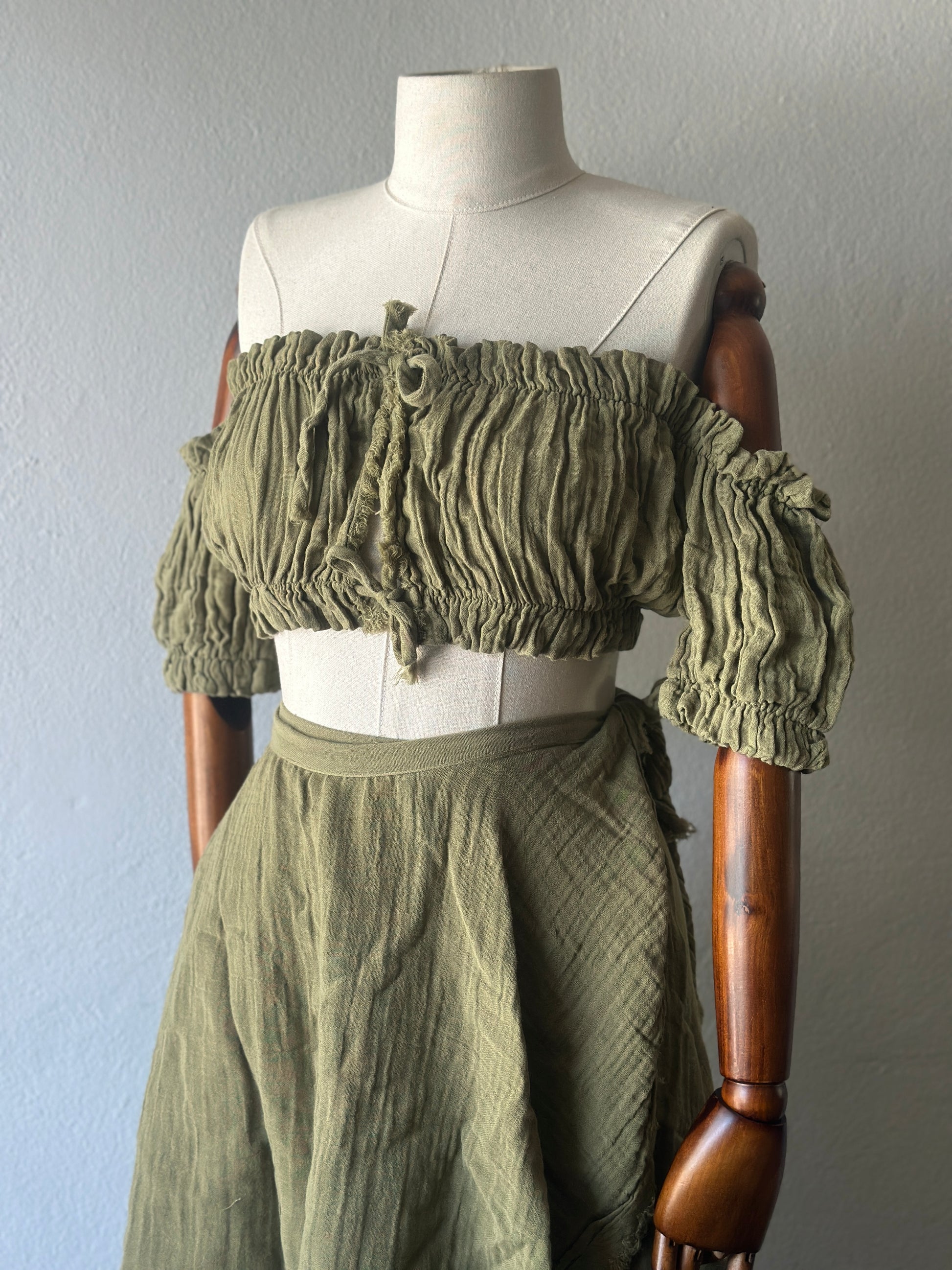 • Parçalar: Mini lastikli bluz + pareo etek (ön kısa – arka uzun)