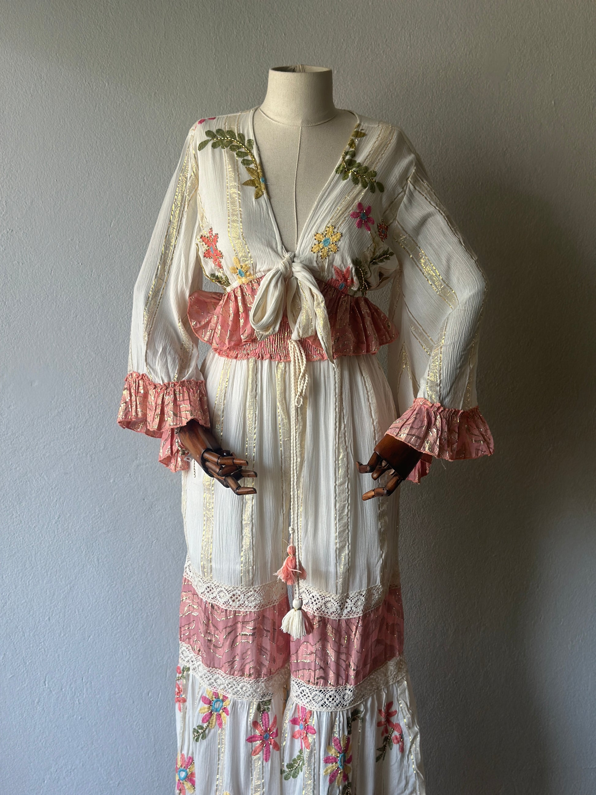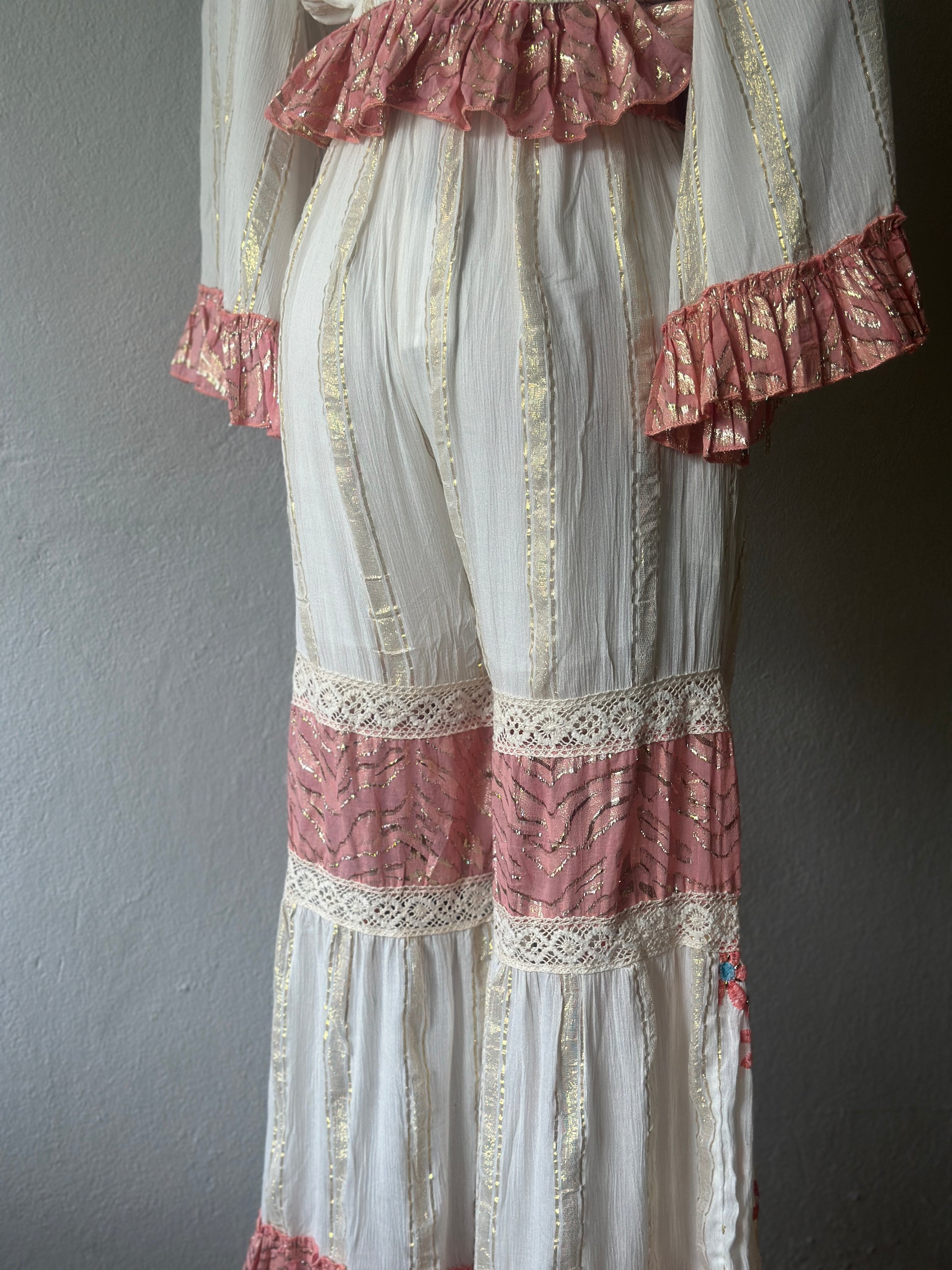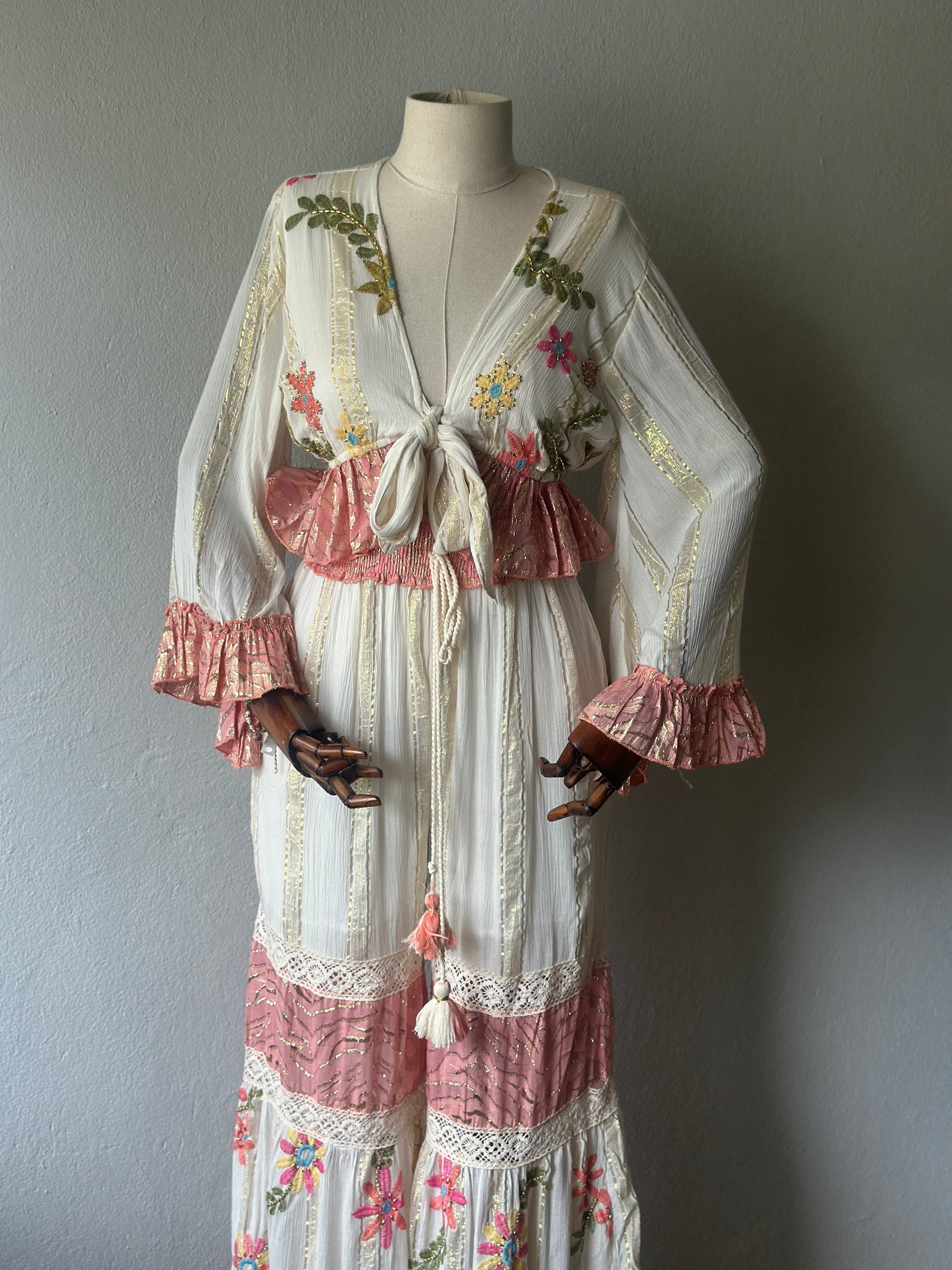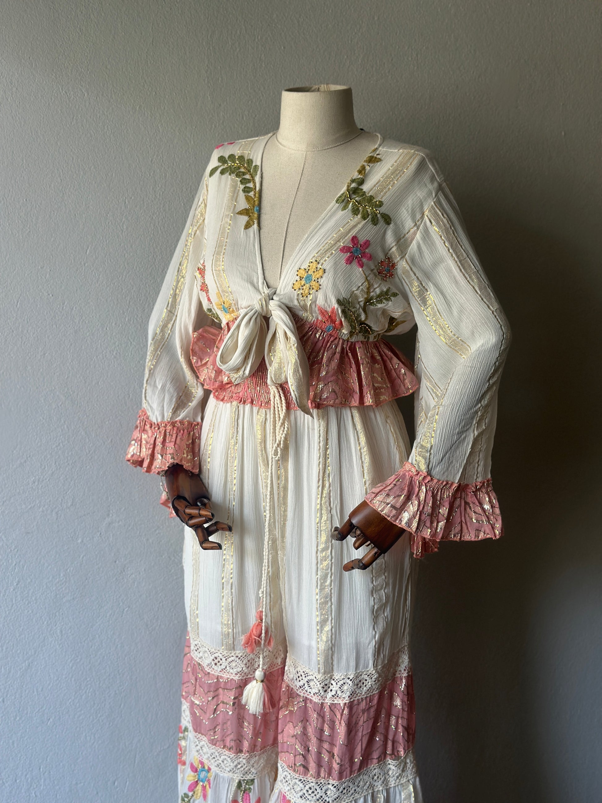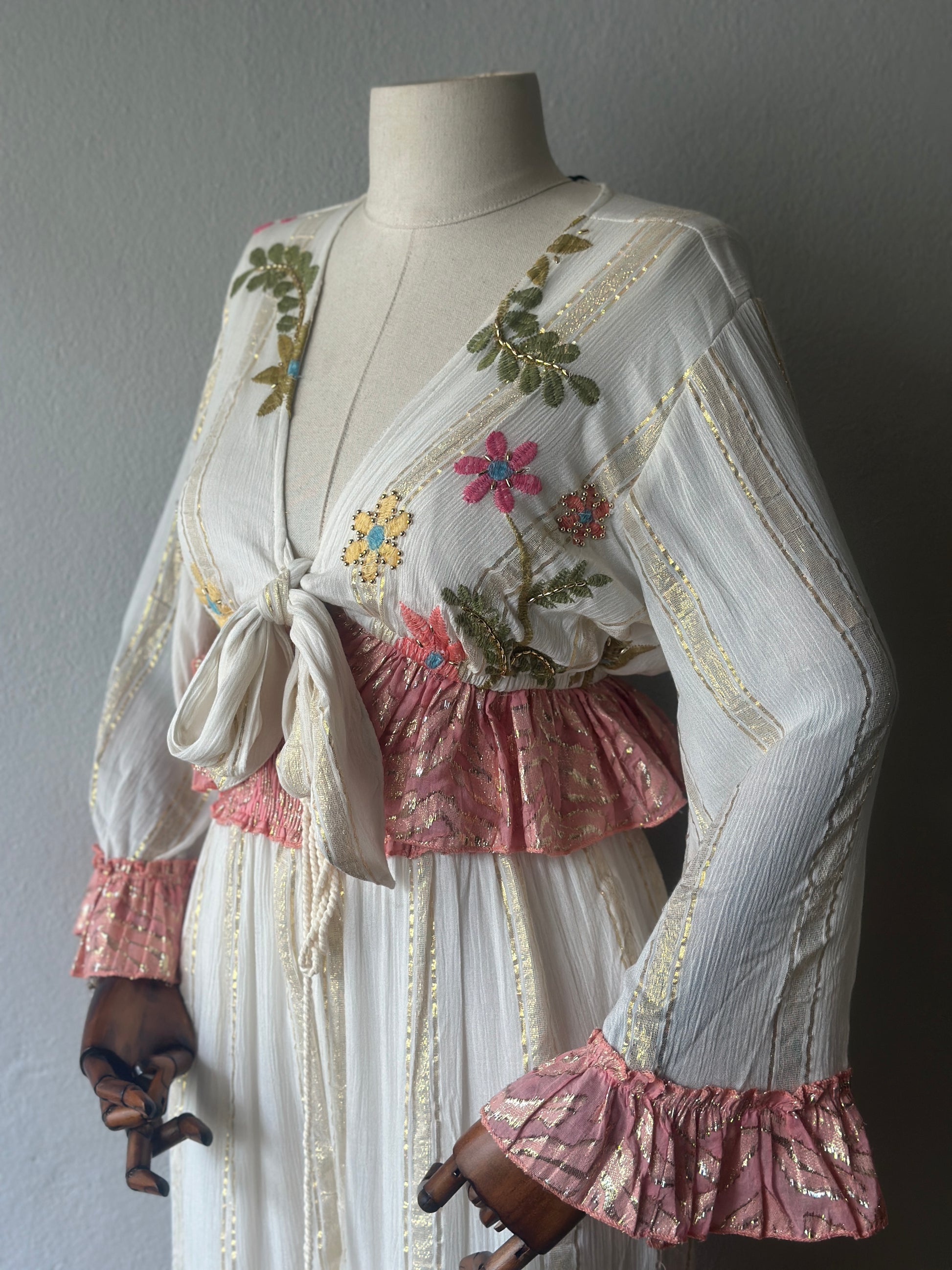 El işçiliği ile hazırlanmış bu özel takım, bohem ve romantik tarzı bir araya getiriyor. Nakış detayları, dantel dokunuşlar ve fırfırlı kollarıyla her detayı özenle tasarlanmıştır.