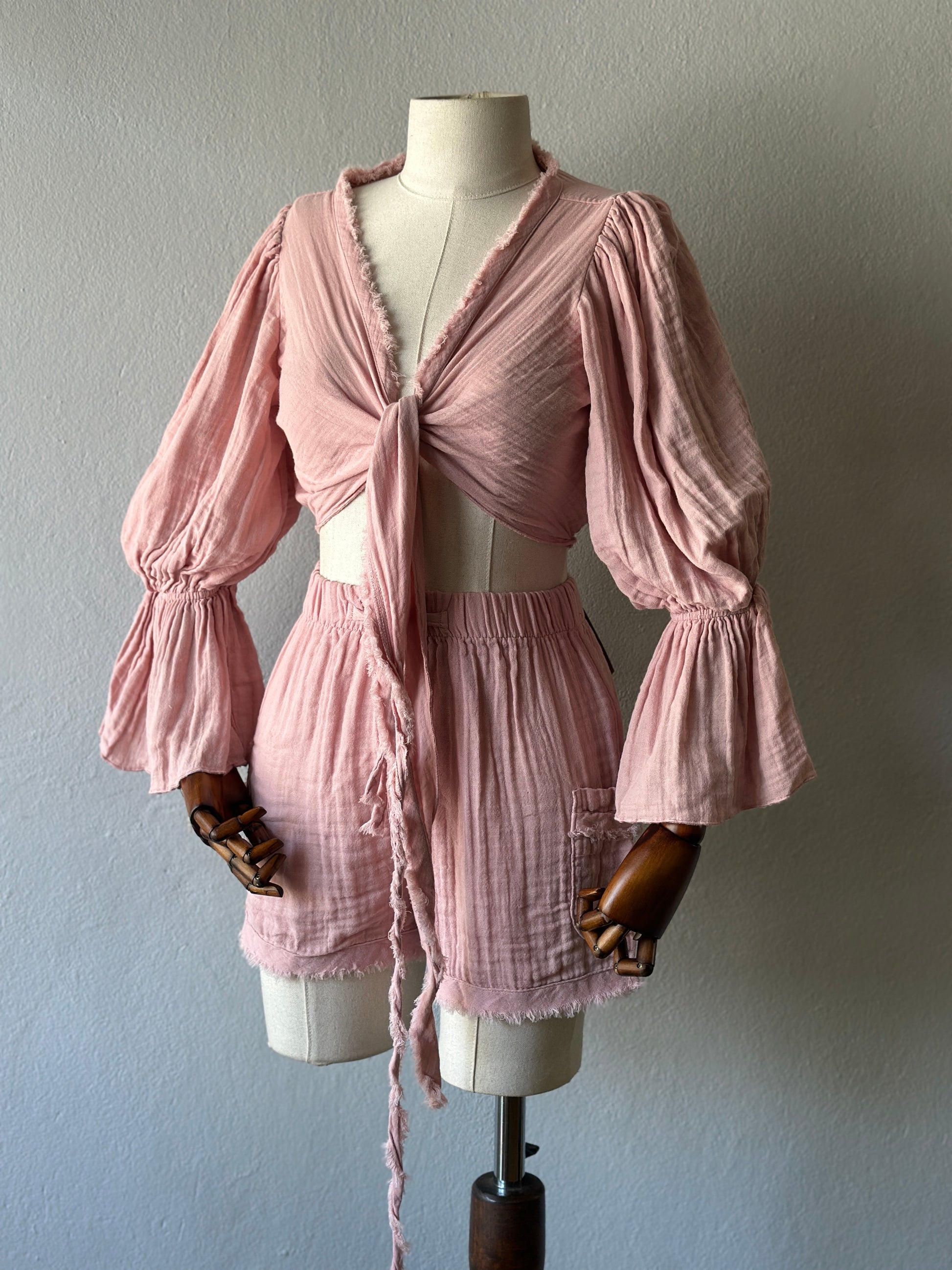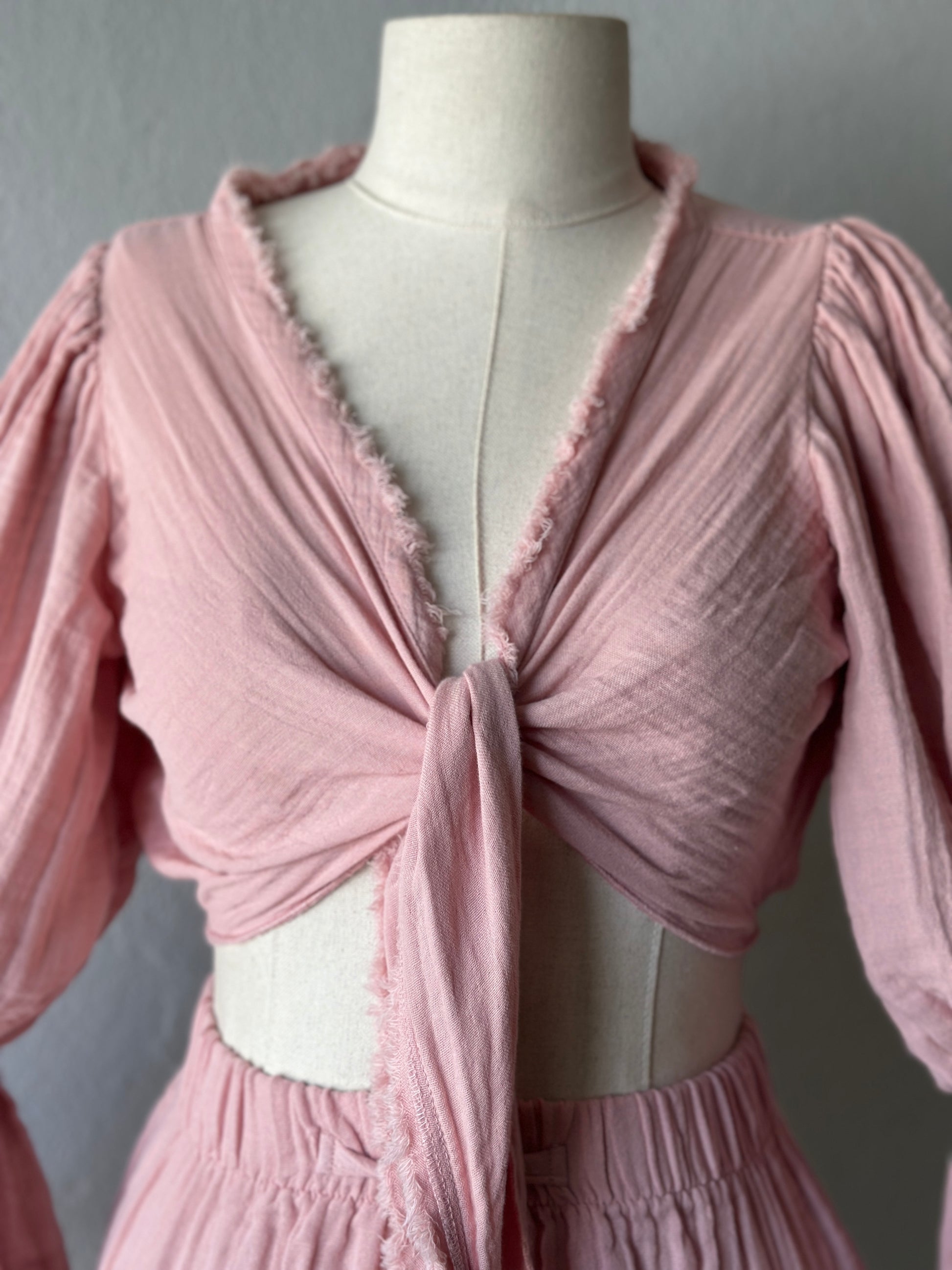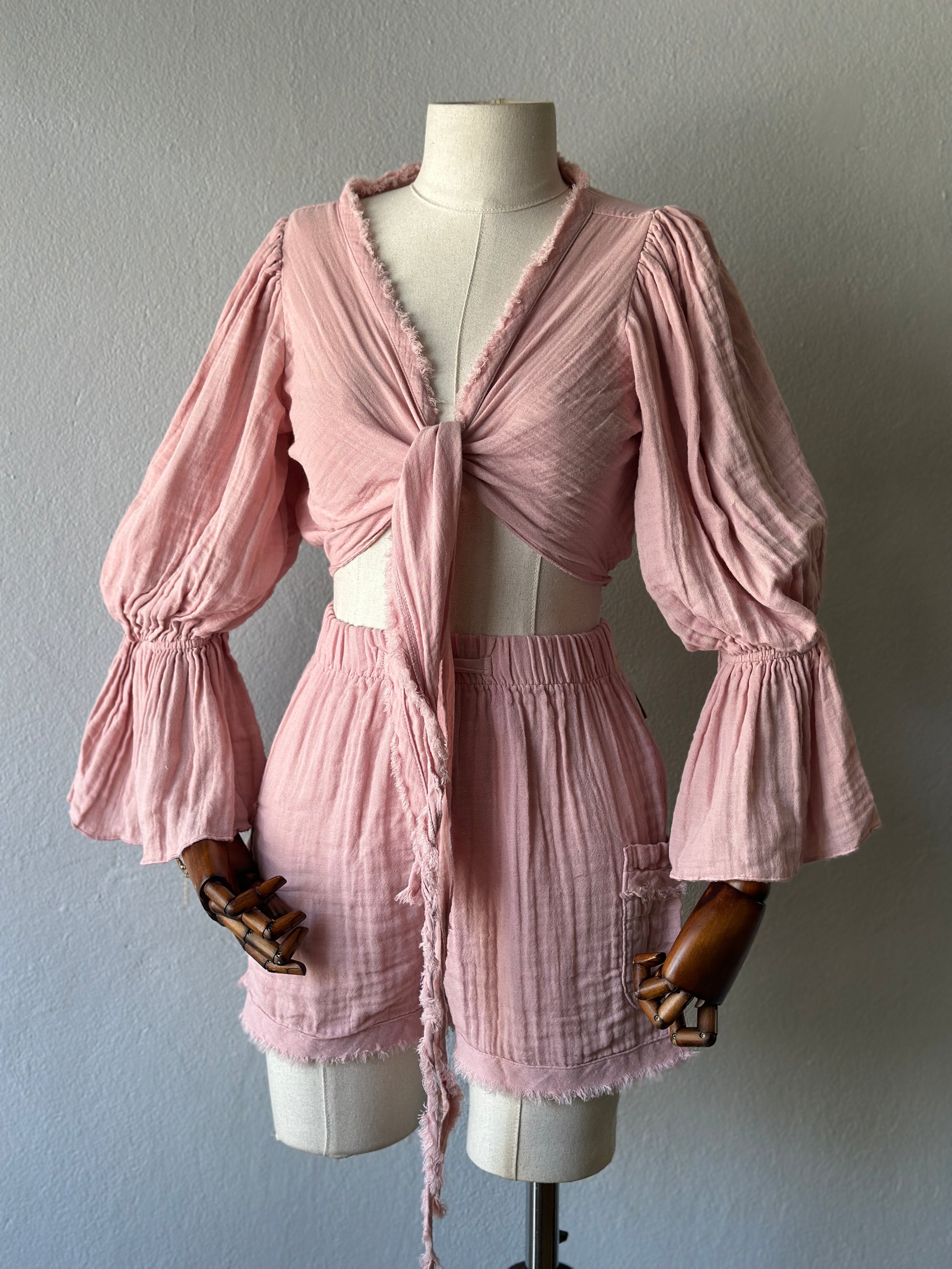 • Bluz: Uzun kollu, büzgülü kol detaylı, önden bağlamalı veya çapraz şekilde kullanılabilir. STD beden.