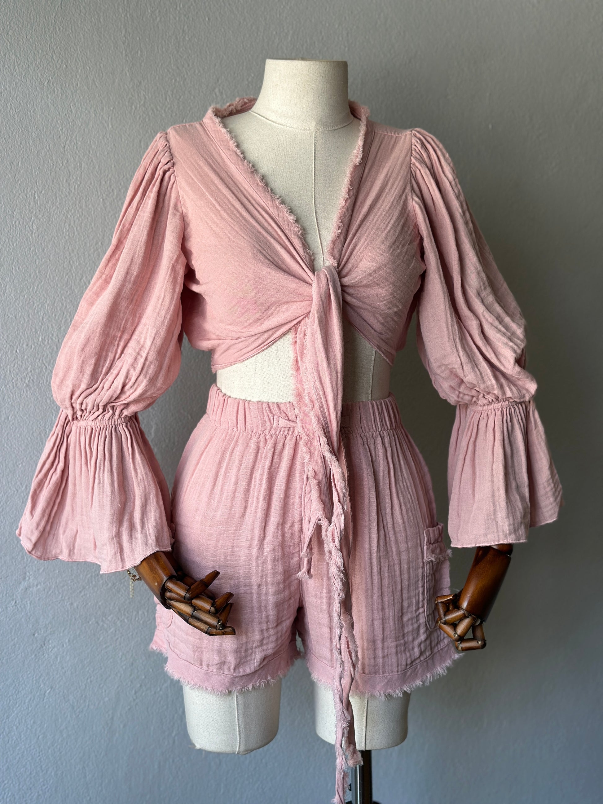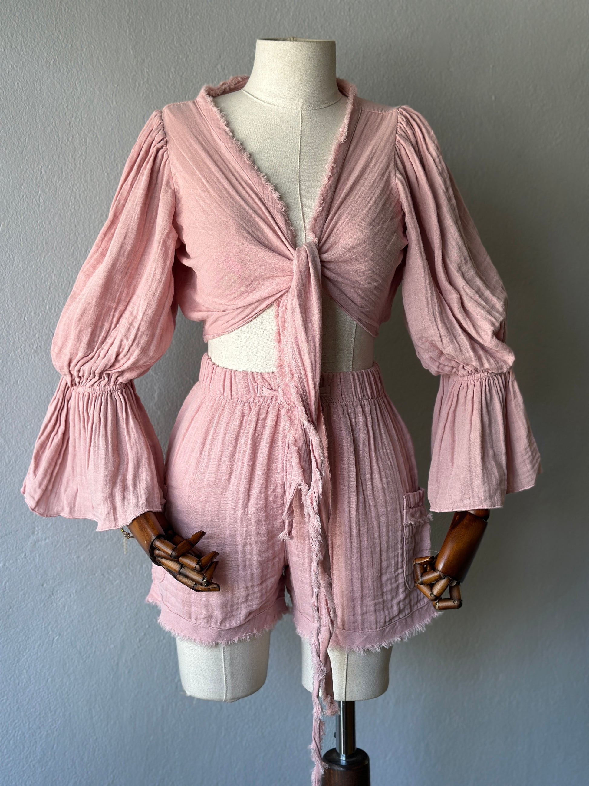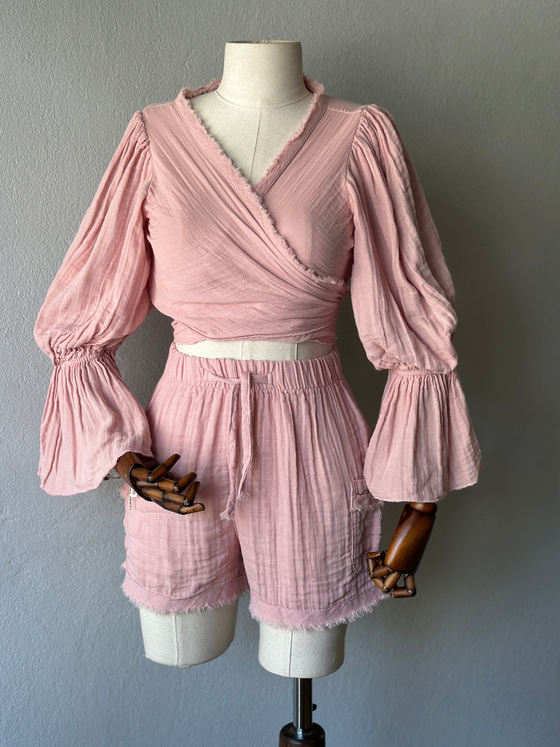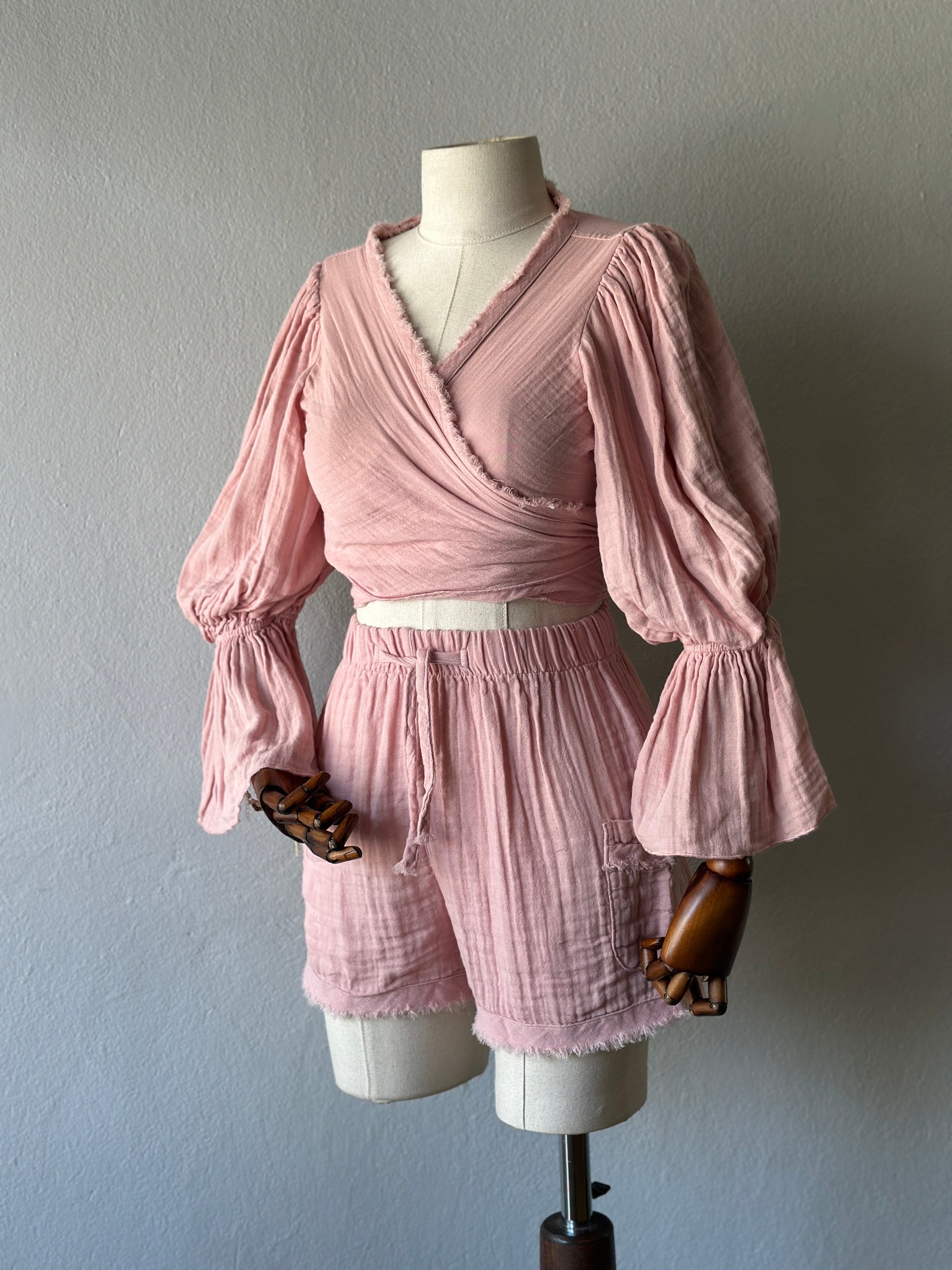 • Bluz: Uzun kollu, büzgülü kol detaylı, önden bağlamalı veya çapraz şekilde kullanılabilir. STD beden.