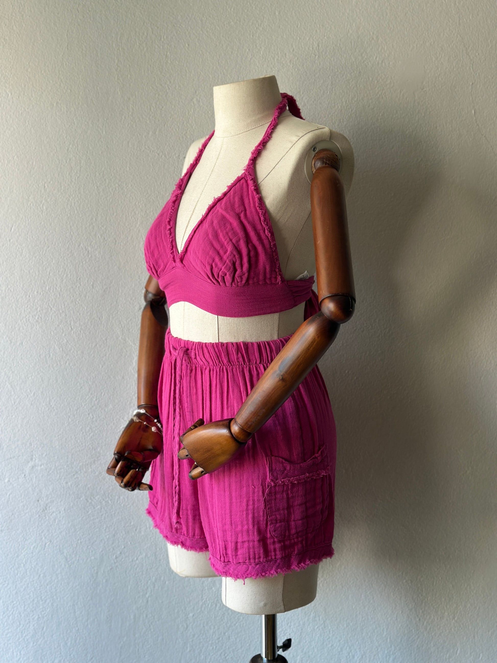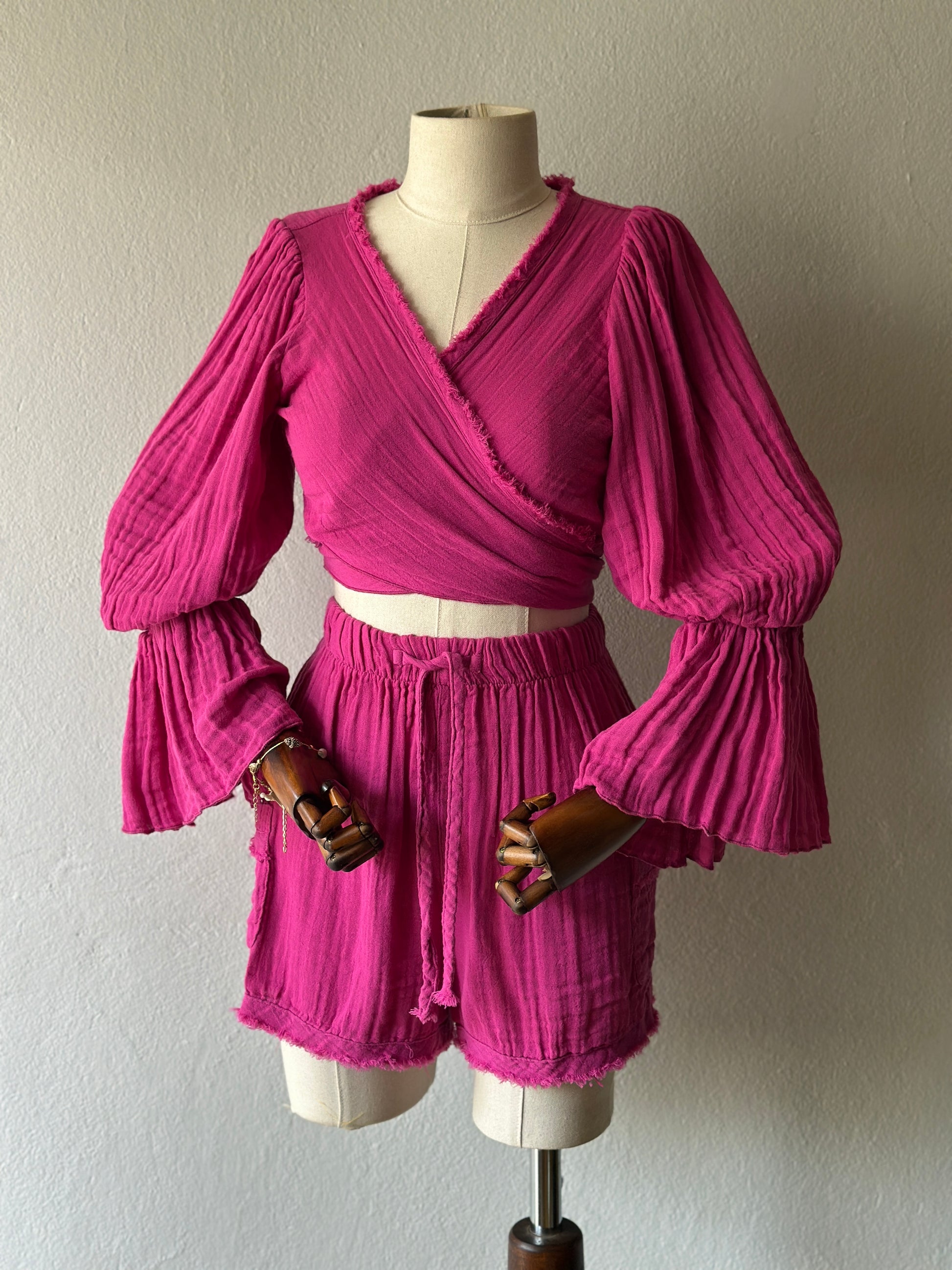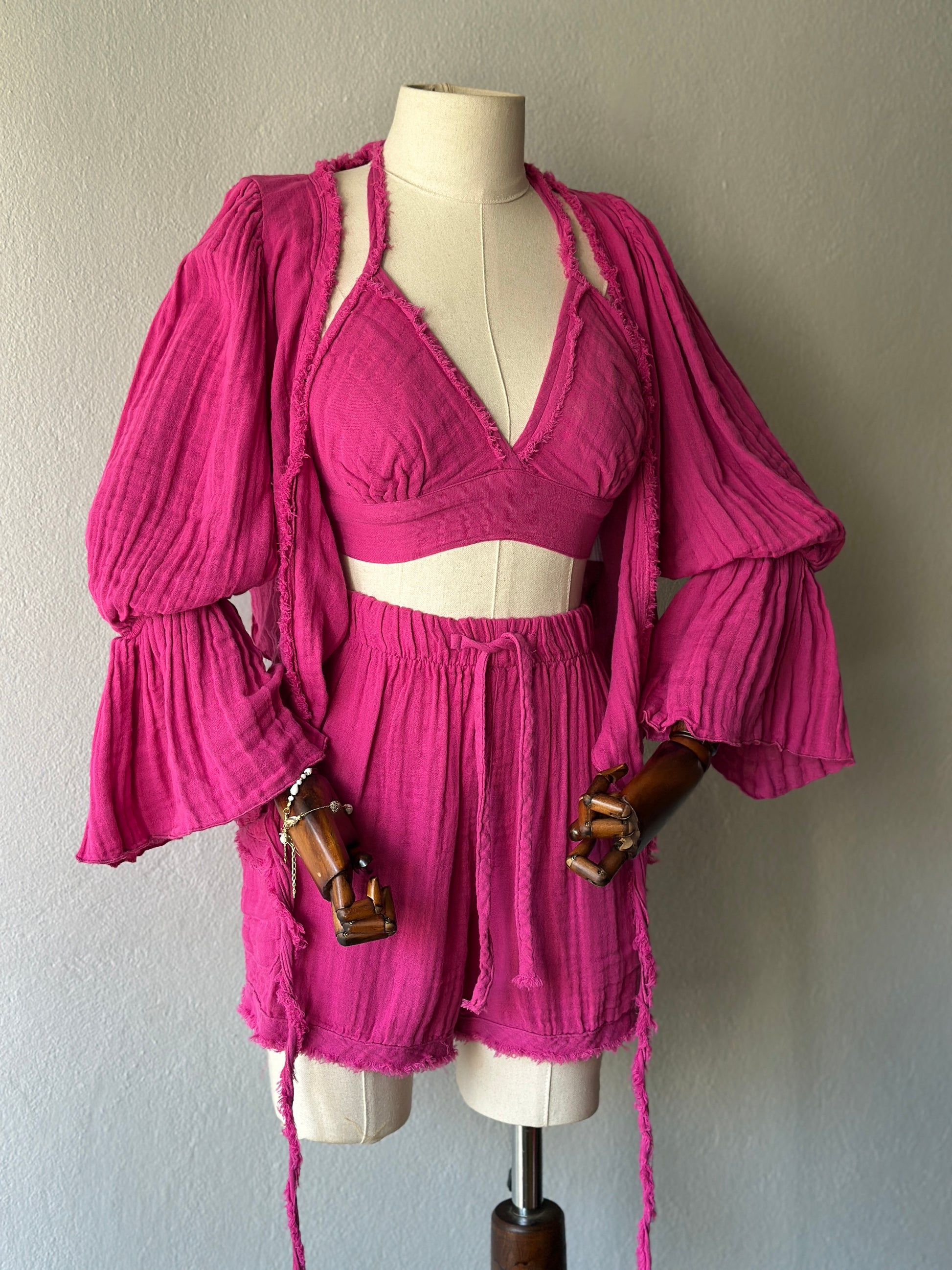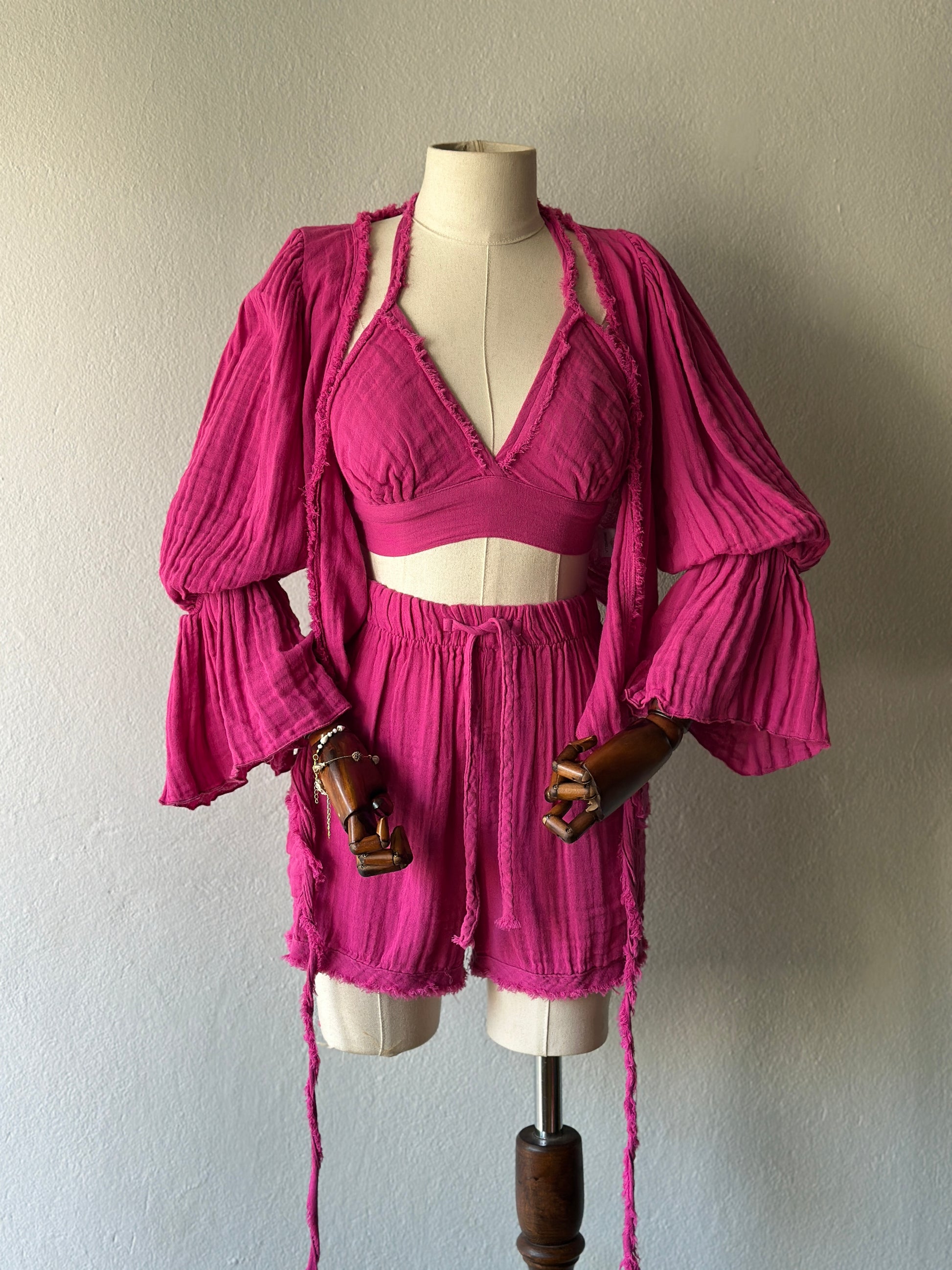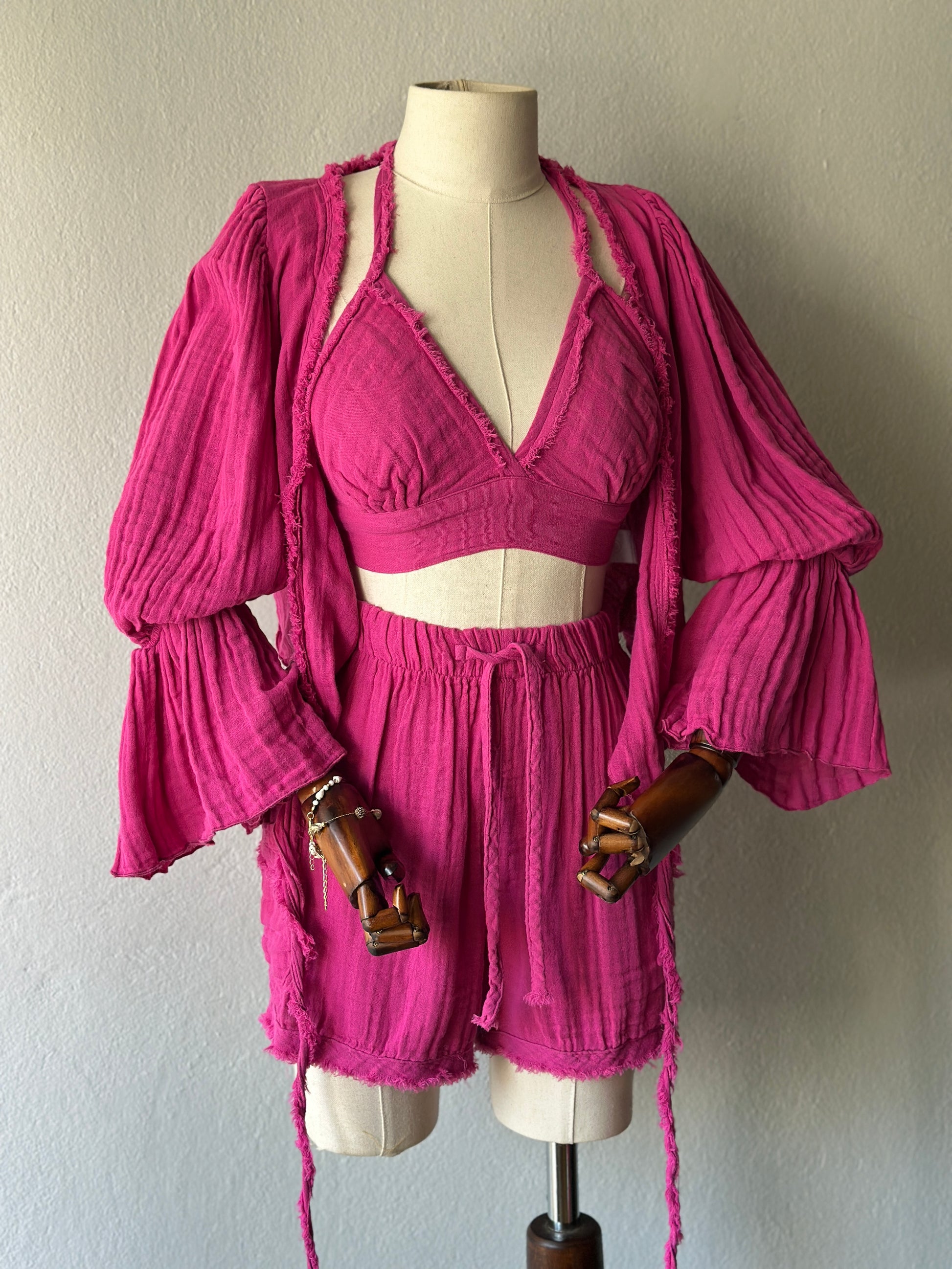 Luna şortlu özel tasarım 3’lü takım - fuşya