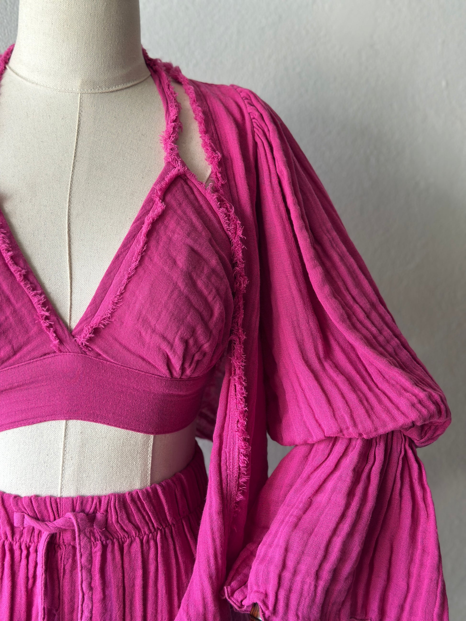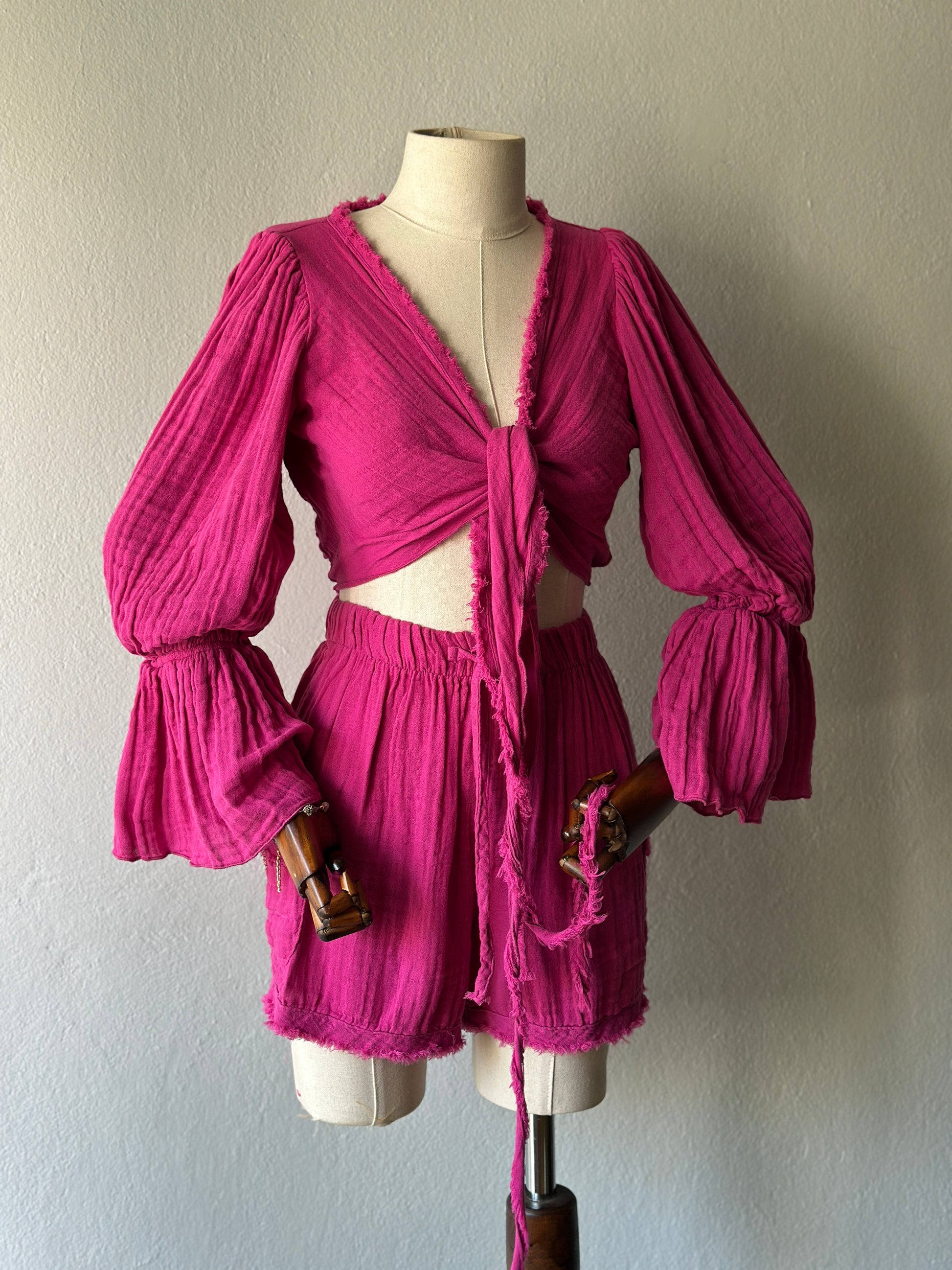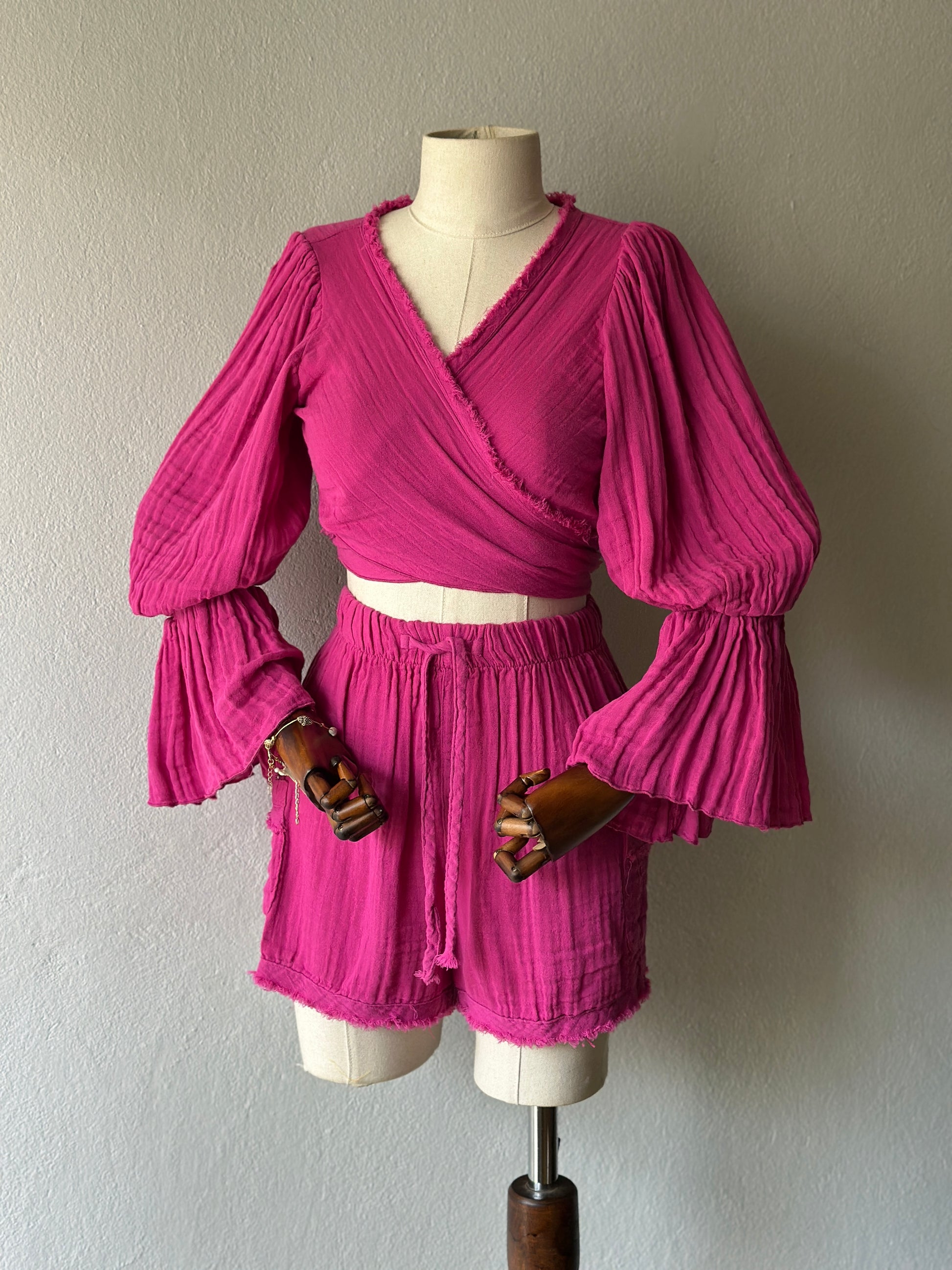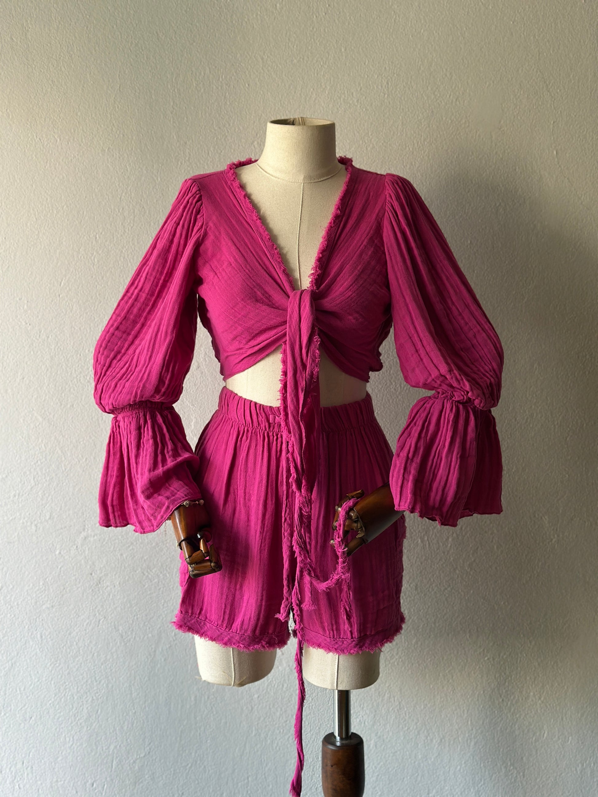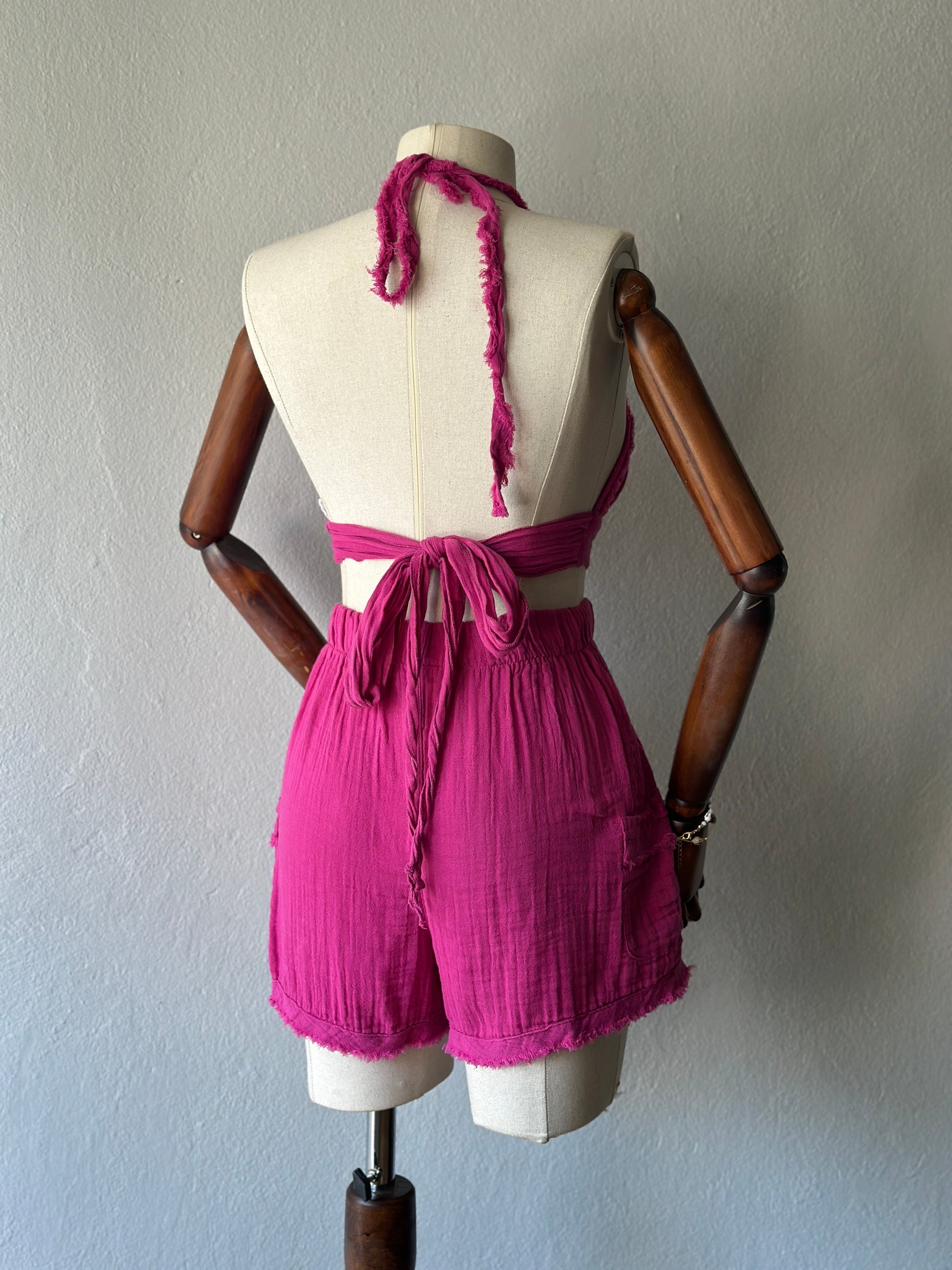 Luna şortlu özel tasarım 3’lü takım - fuşya