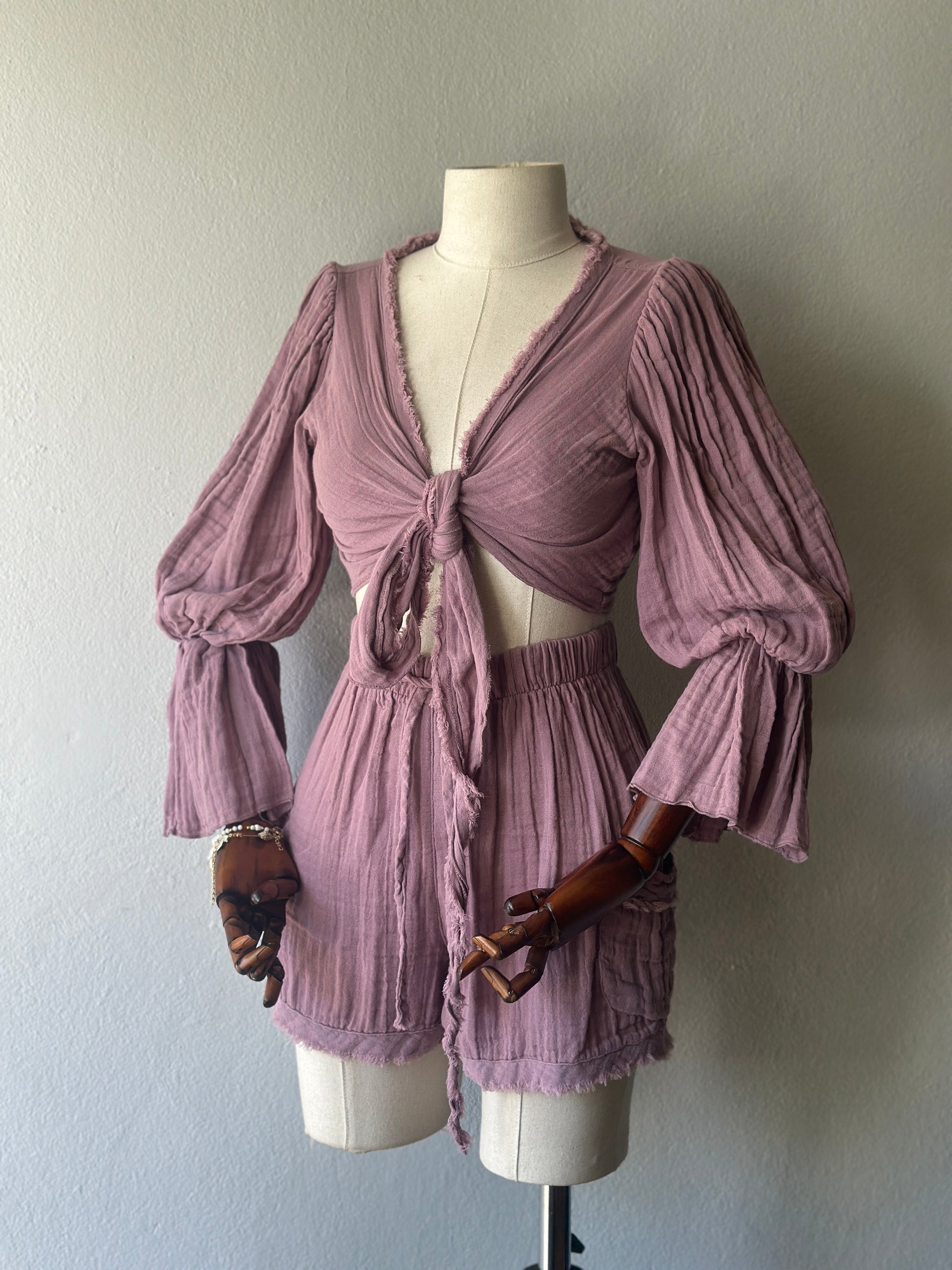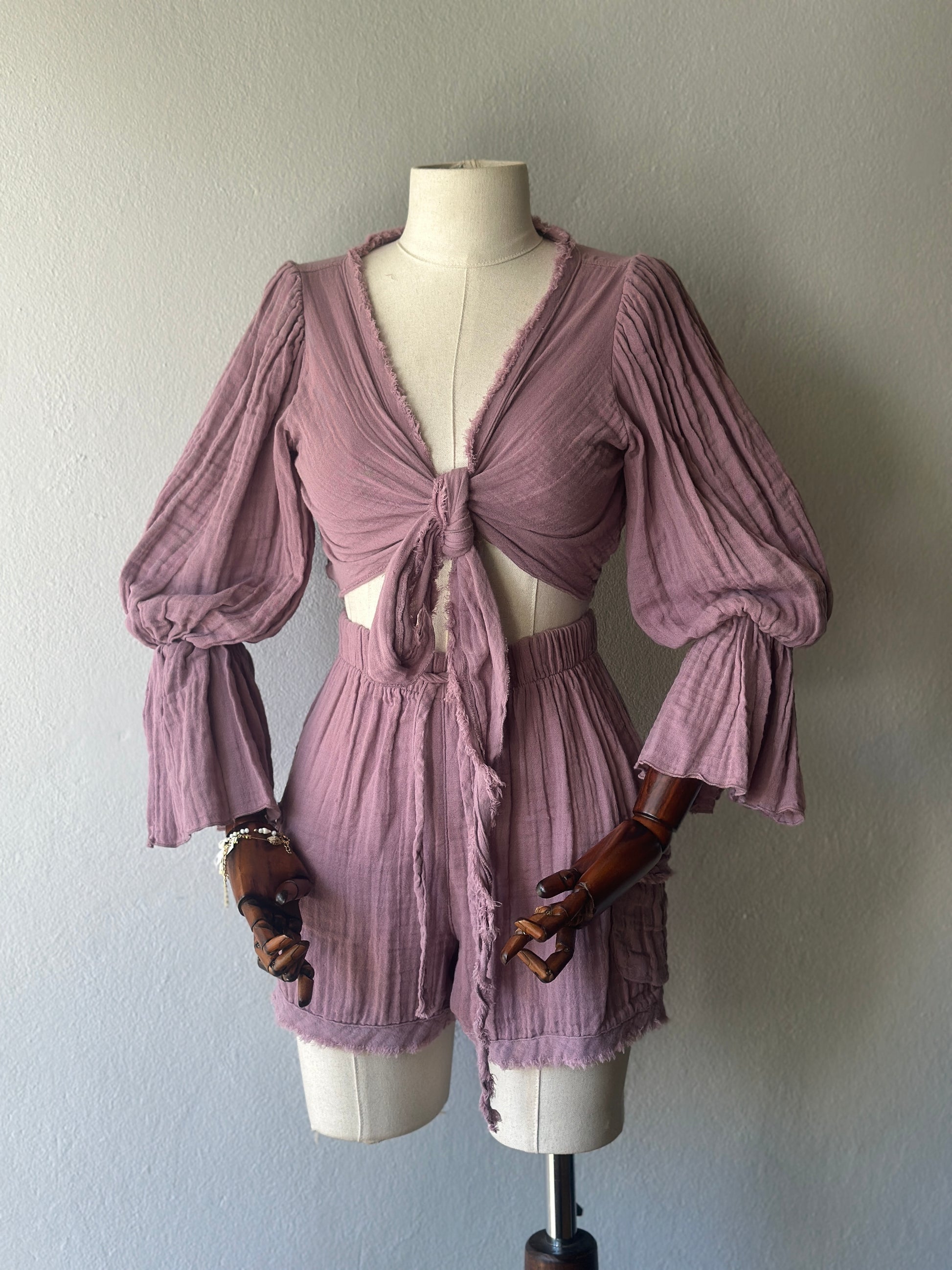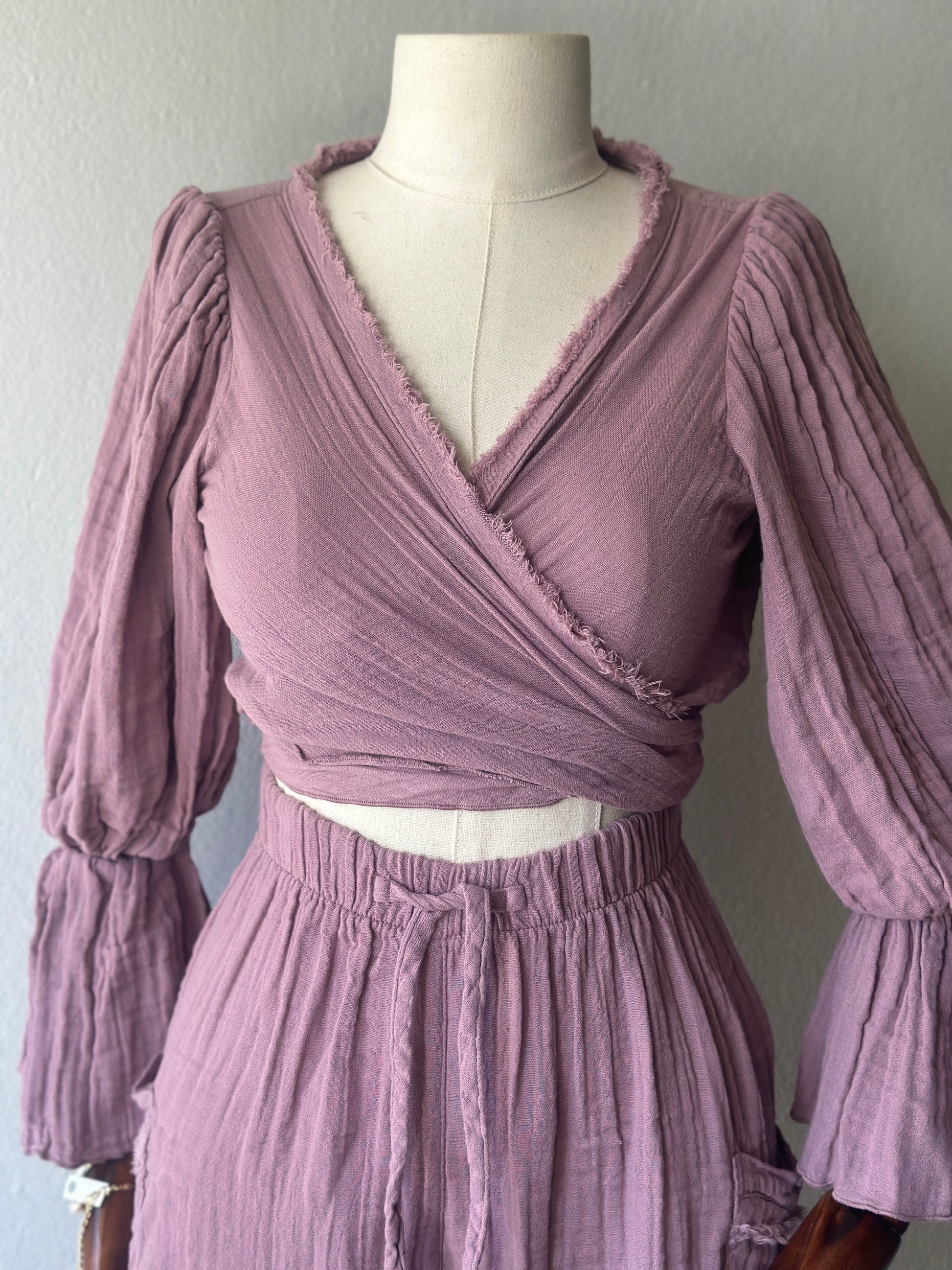 • Bluz: Uzun kollu, büzgülü kol detaylı, önden bağlamalı veya çapraz şekilde kullanılabilir. STD beden.