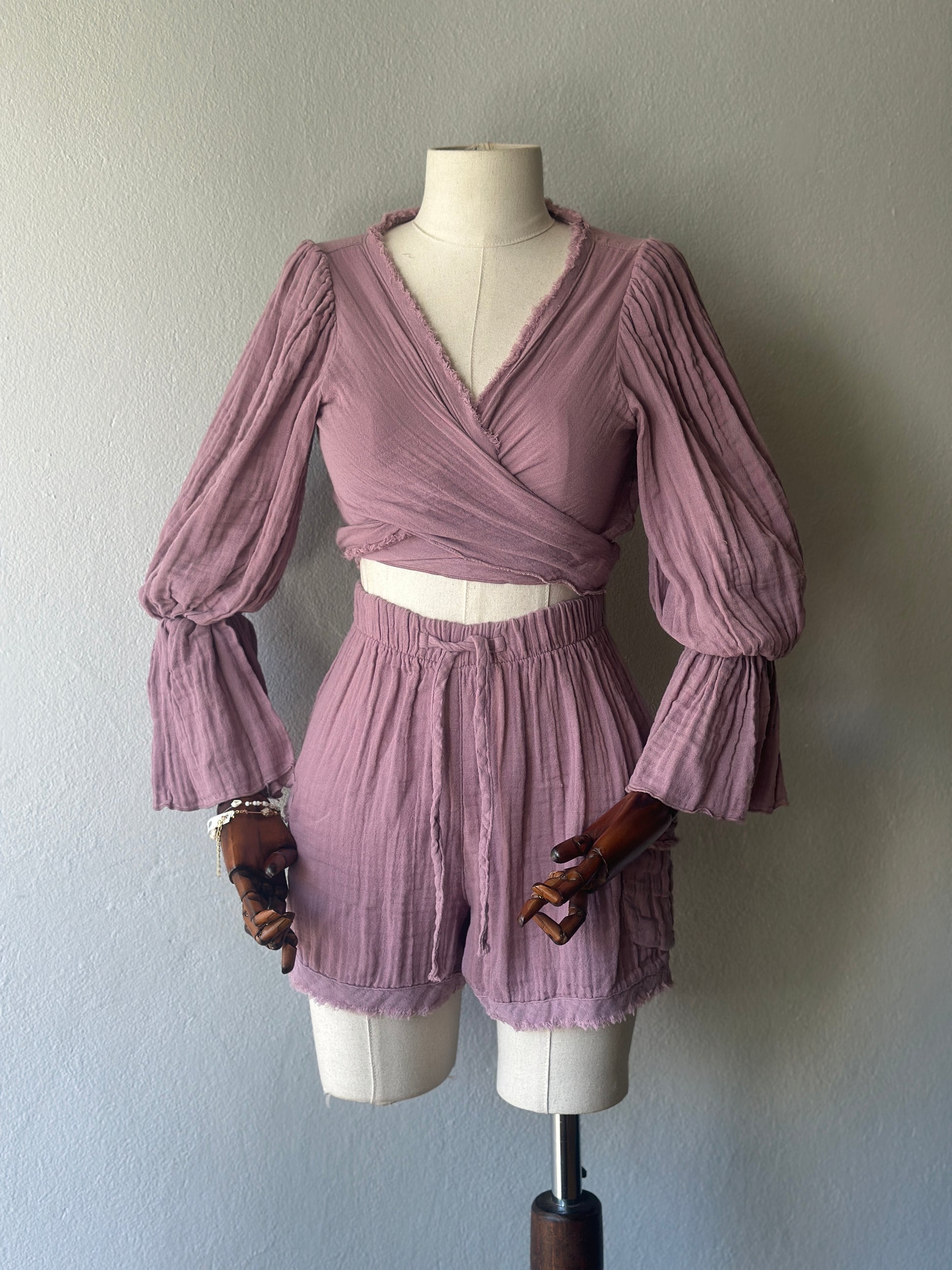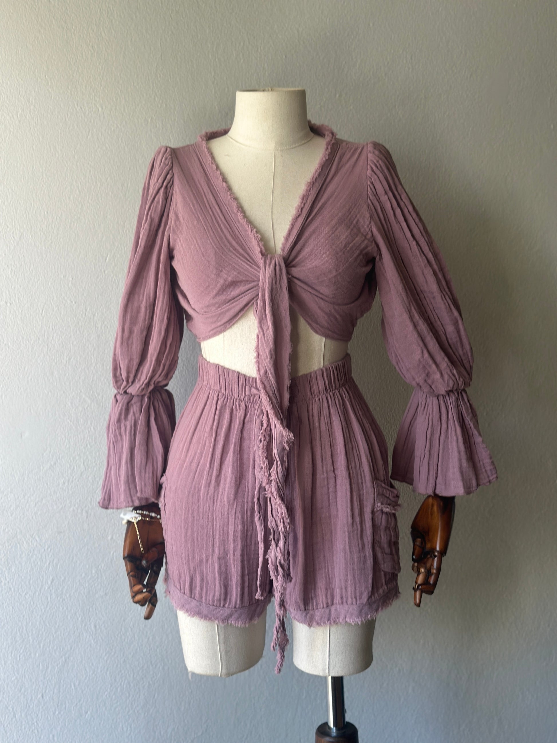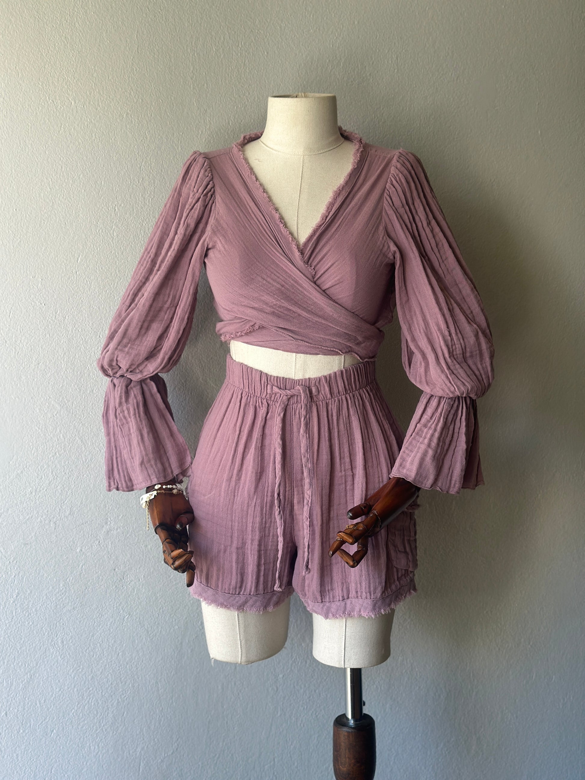 • Bluz: Uzun kollu, büzgülü kol detaylı, önden bağlamalı veya çapraz şekilde kullanılabilir. STD beden.