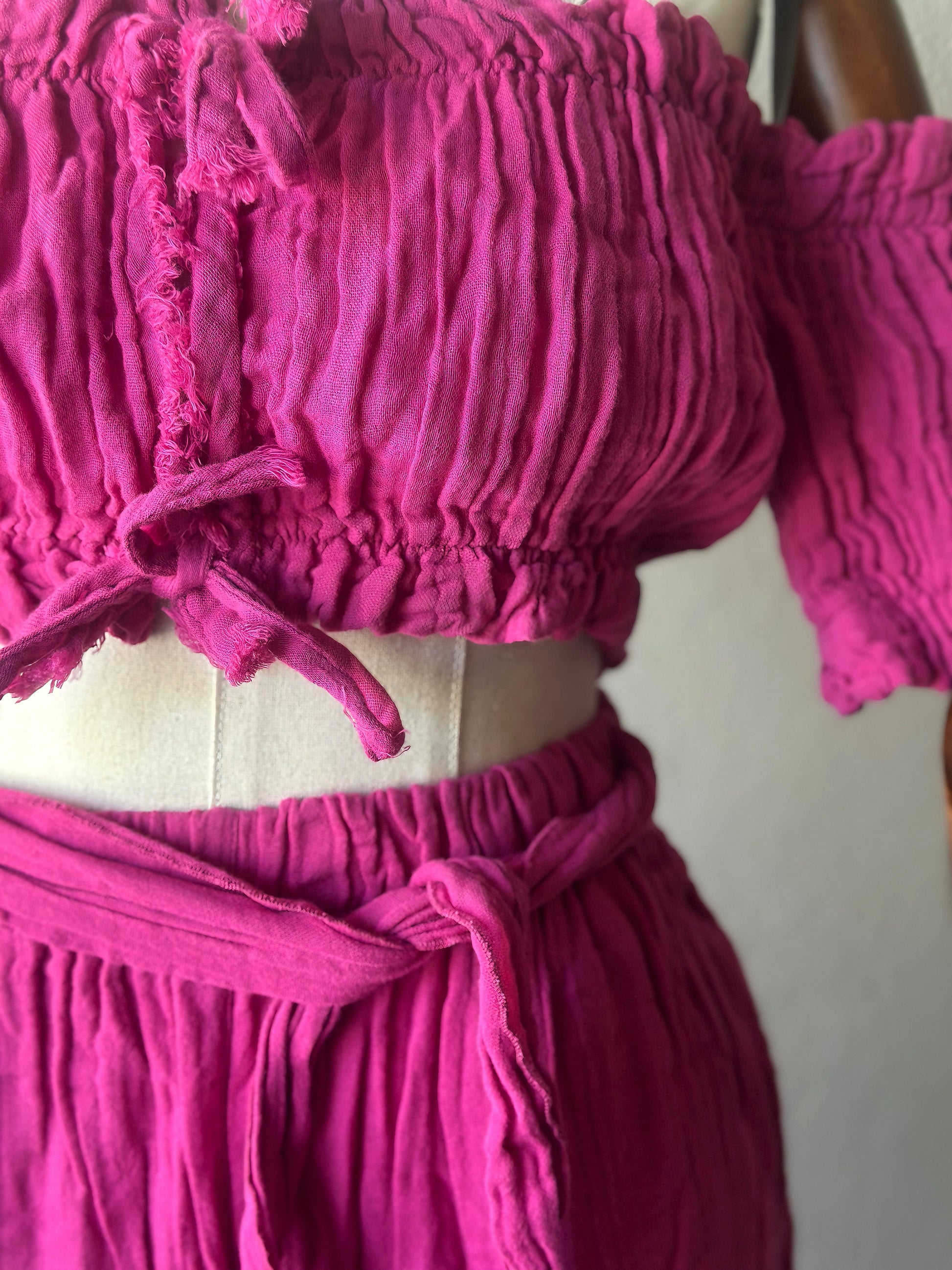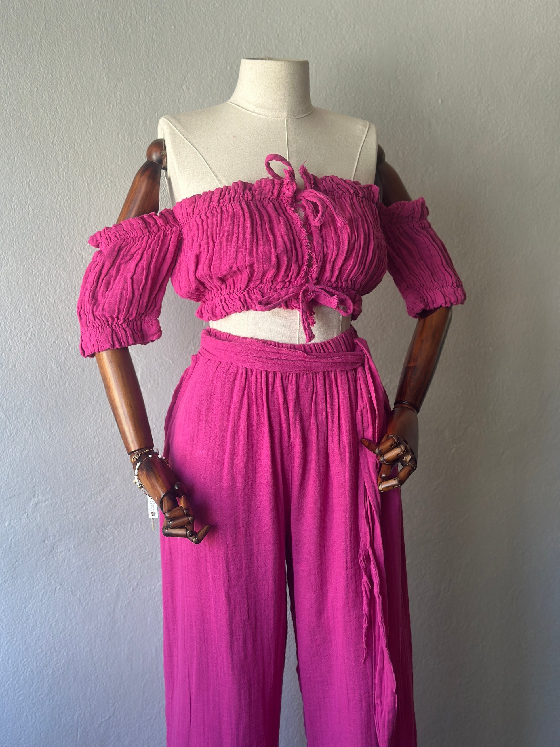 Özel Tasarım mini bluz+pantolon 2’li takım - Fuşya