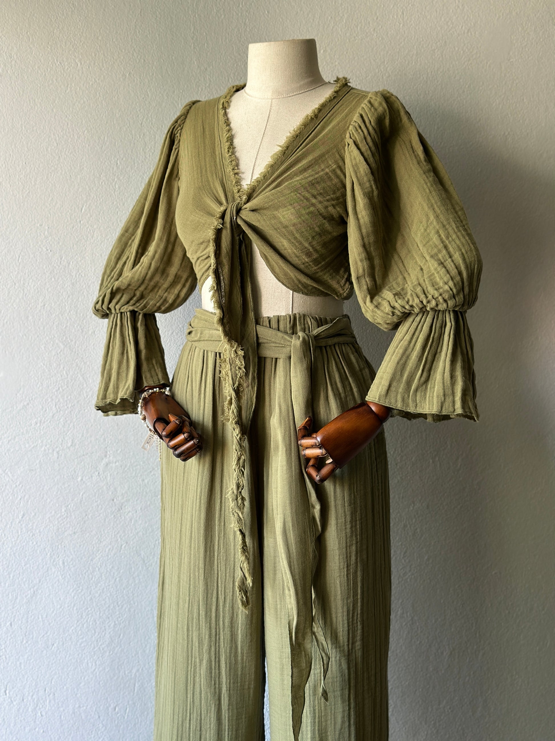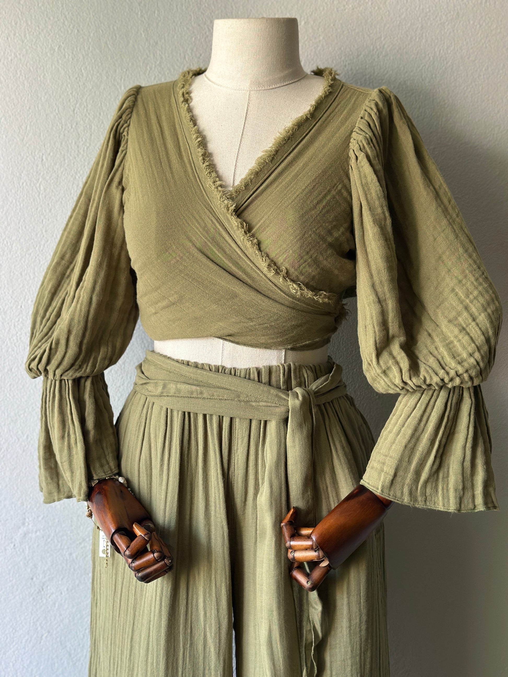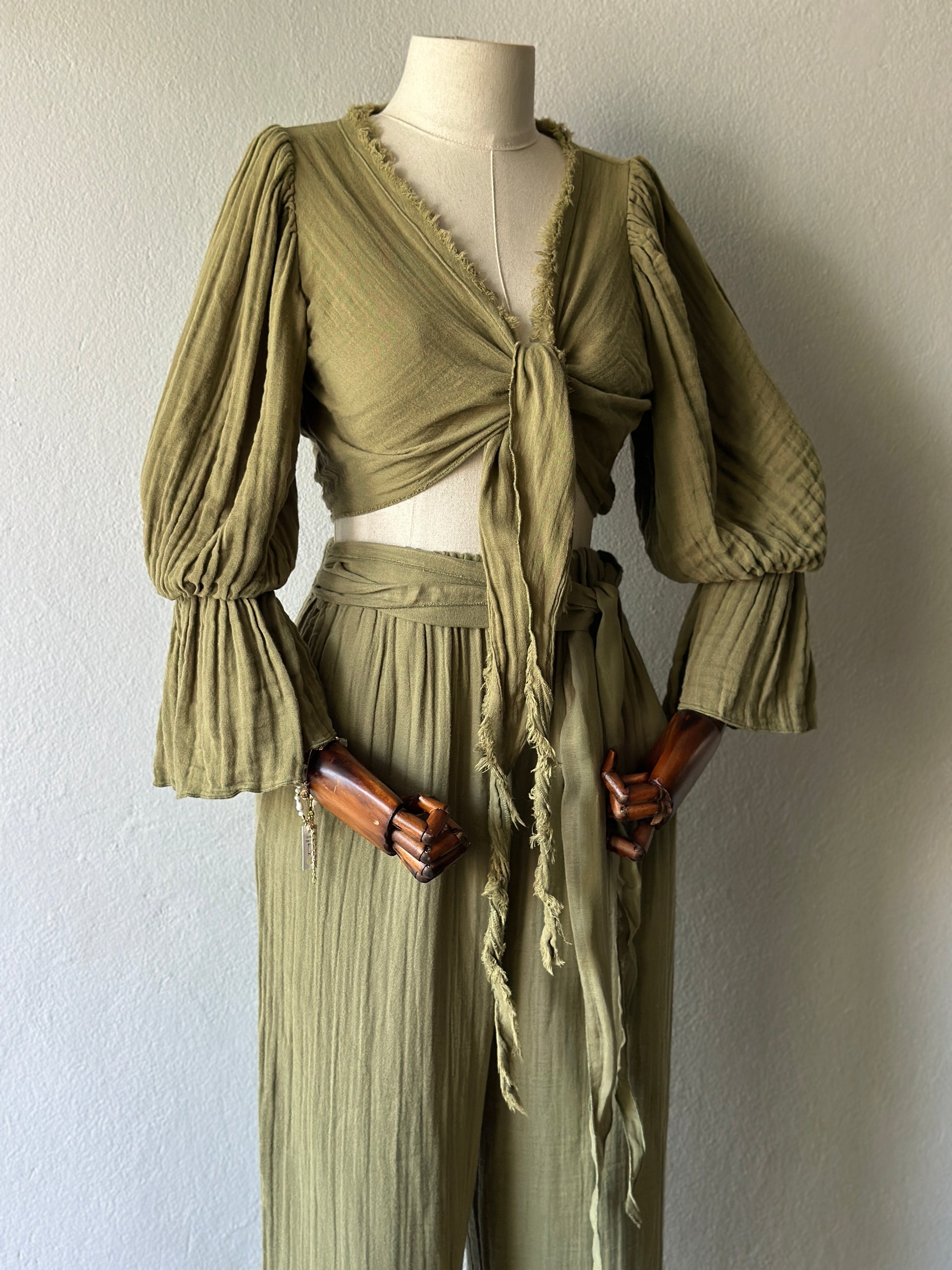 Bağlamalı bluz önden ve arkadan bağlanabilir. STANDART beden.