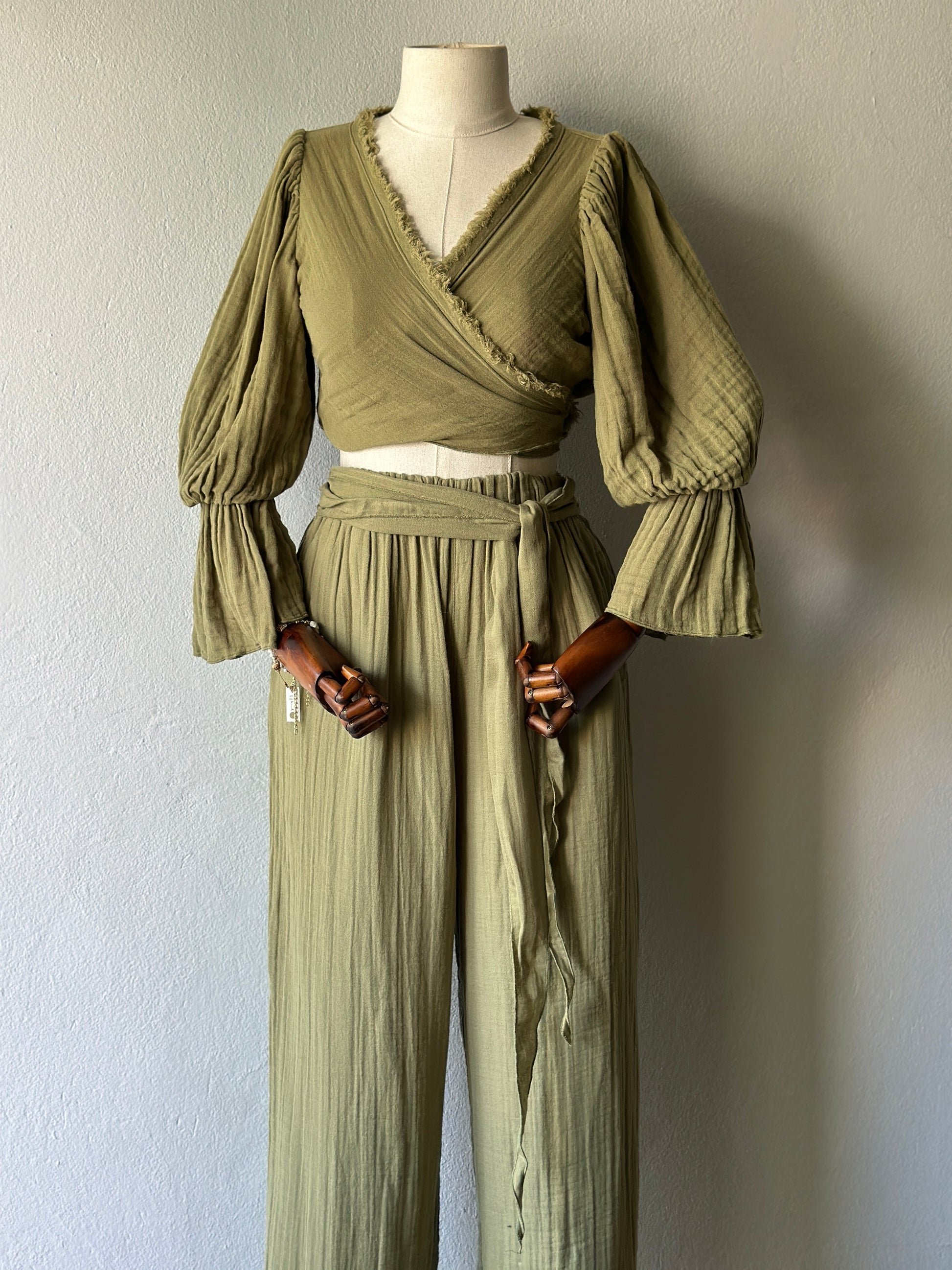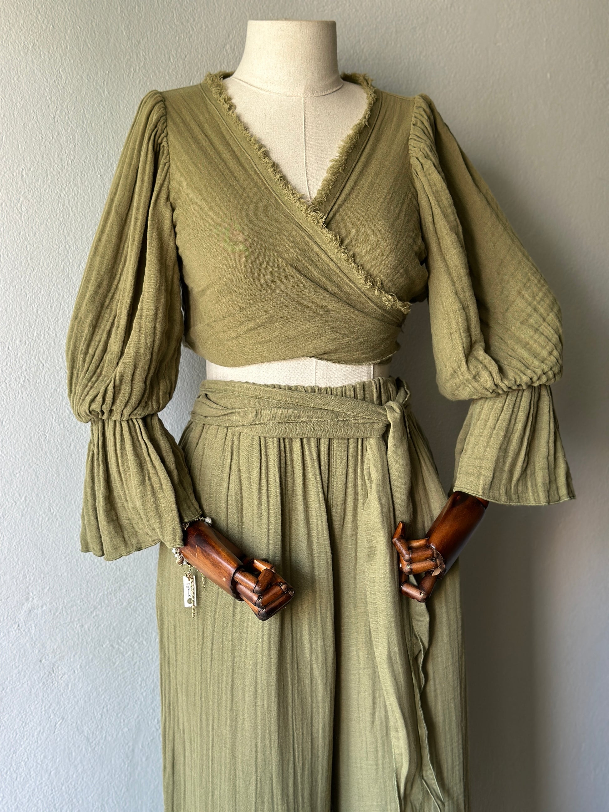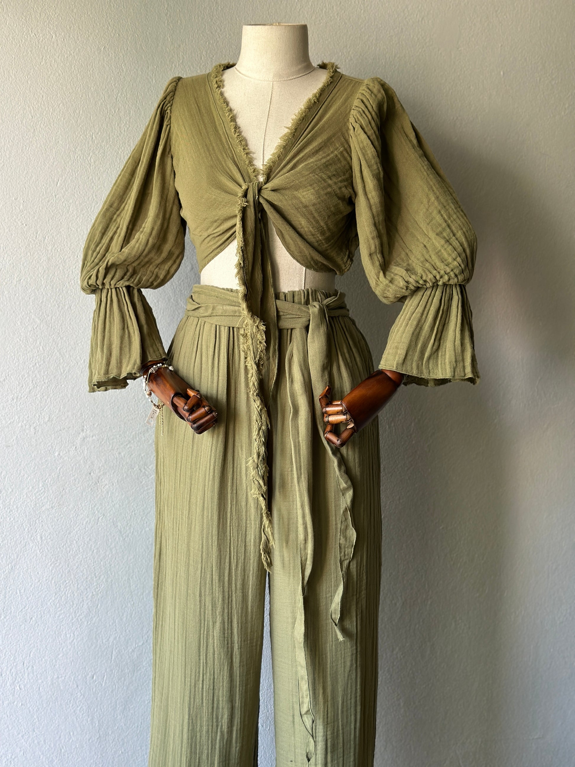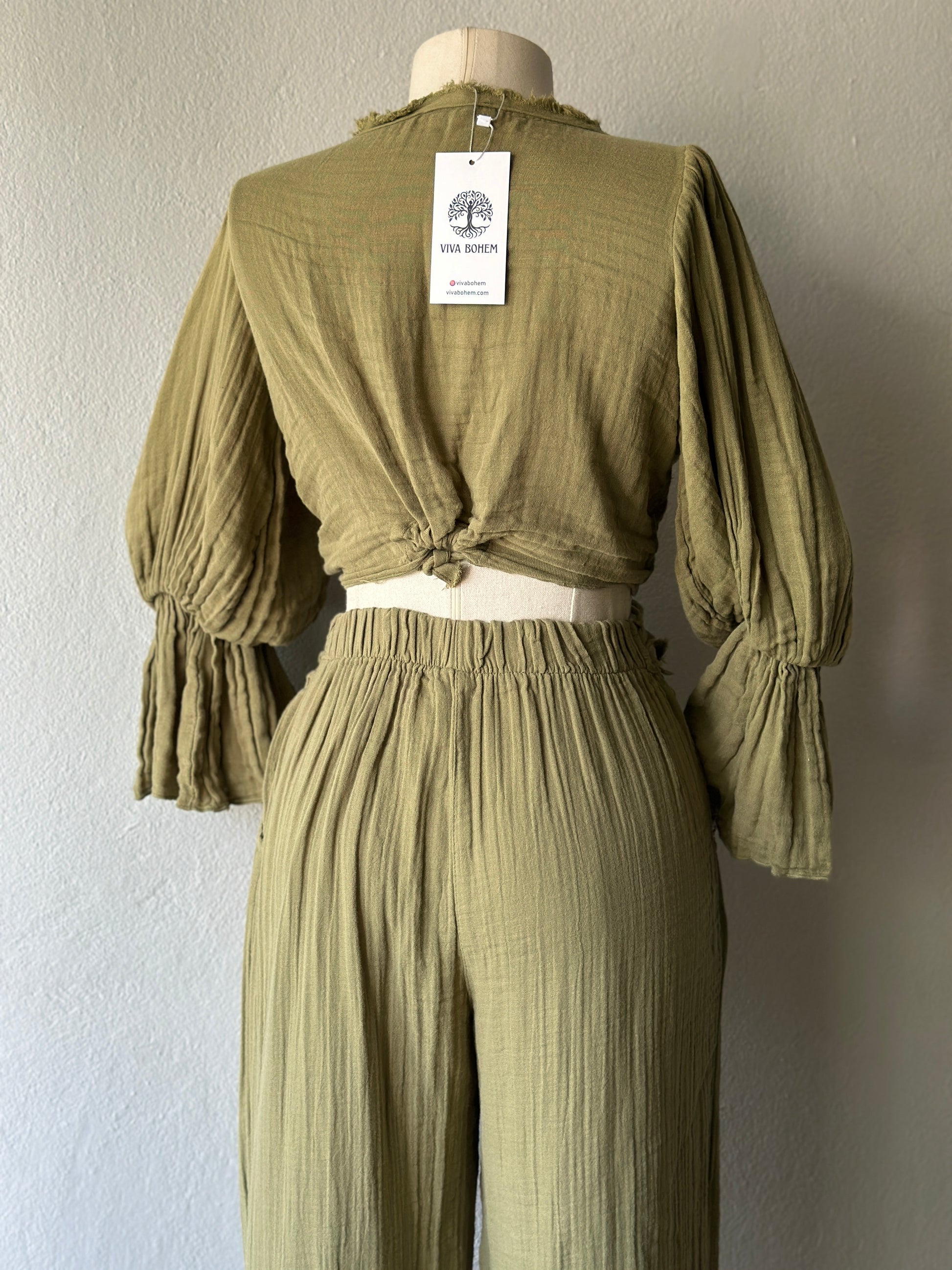 Bağlamalı bluz önden ve arkadan bağlanabilir. STANDART beden.