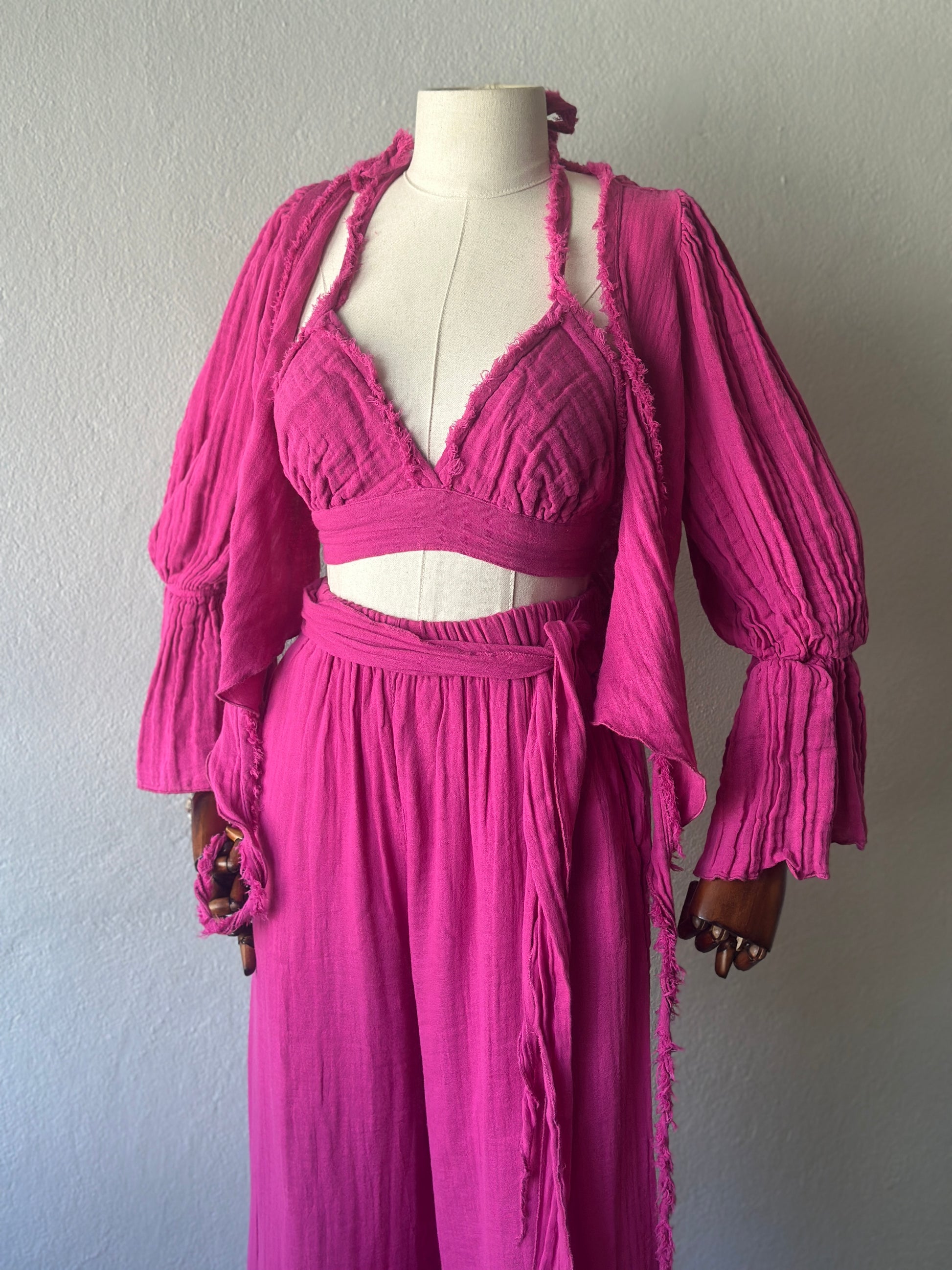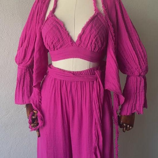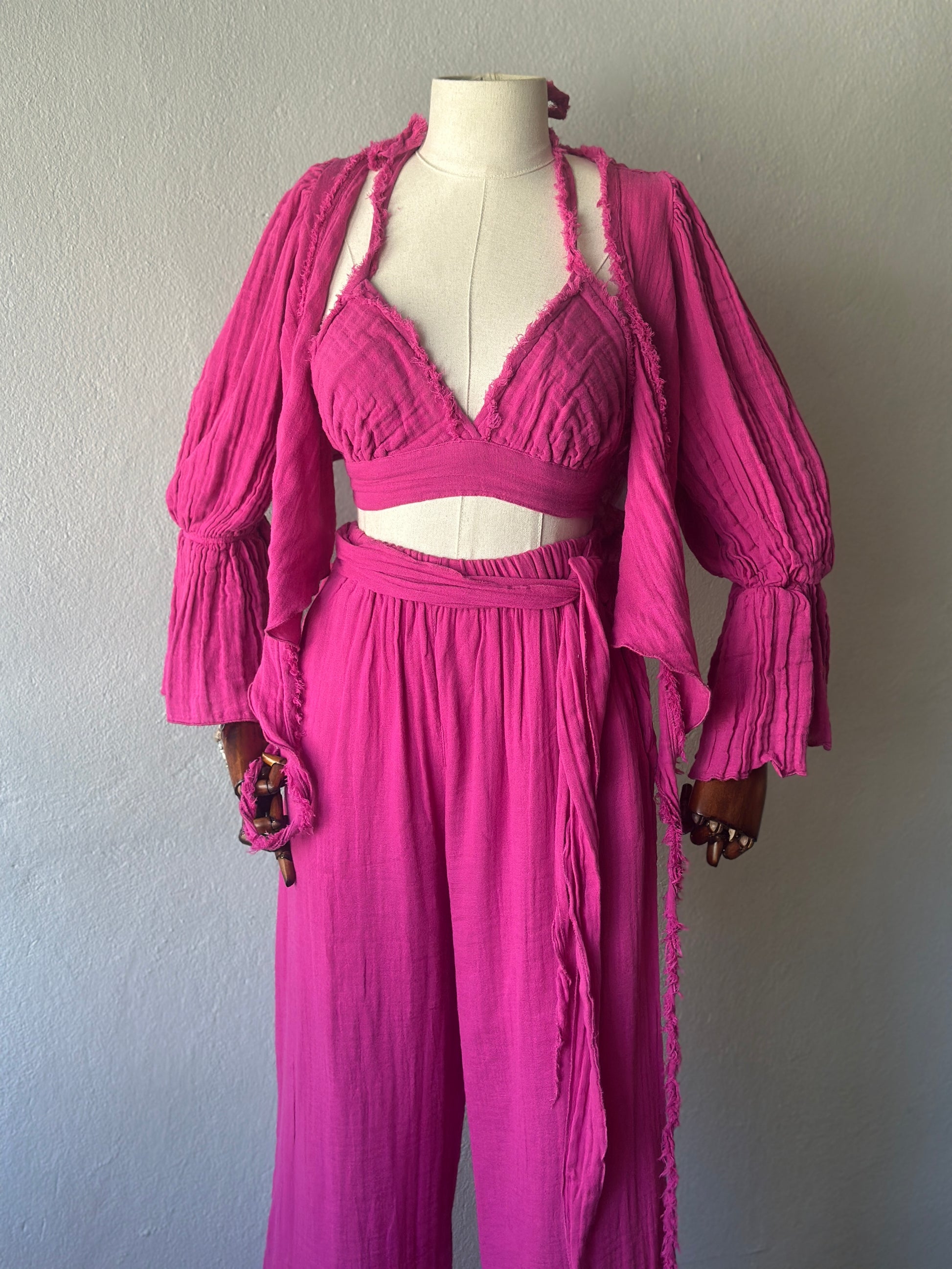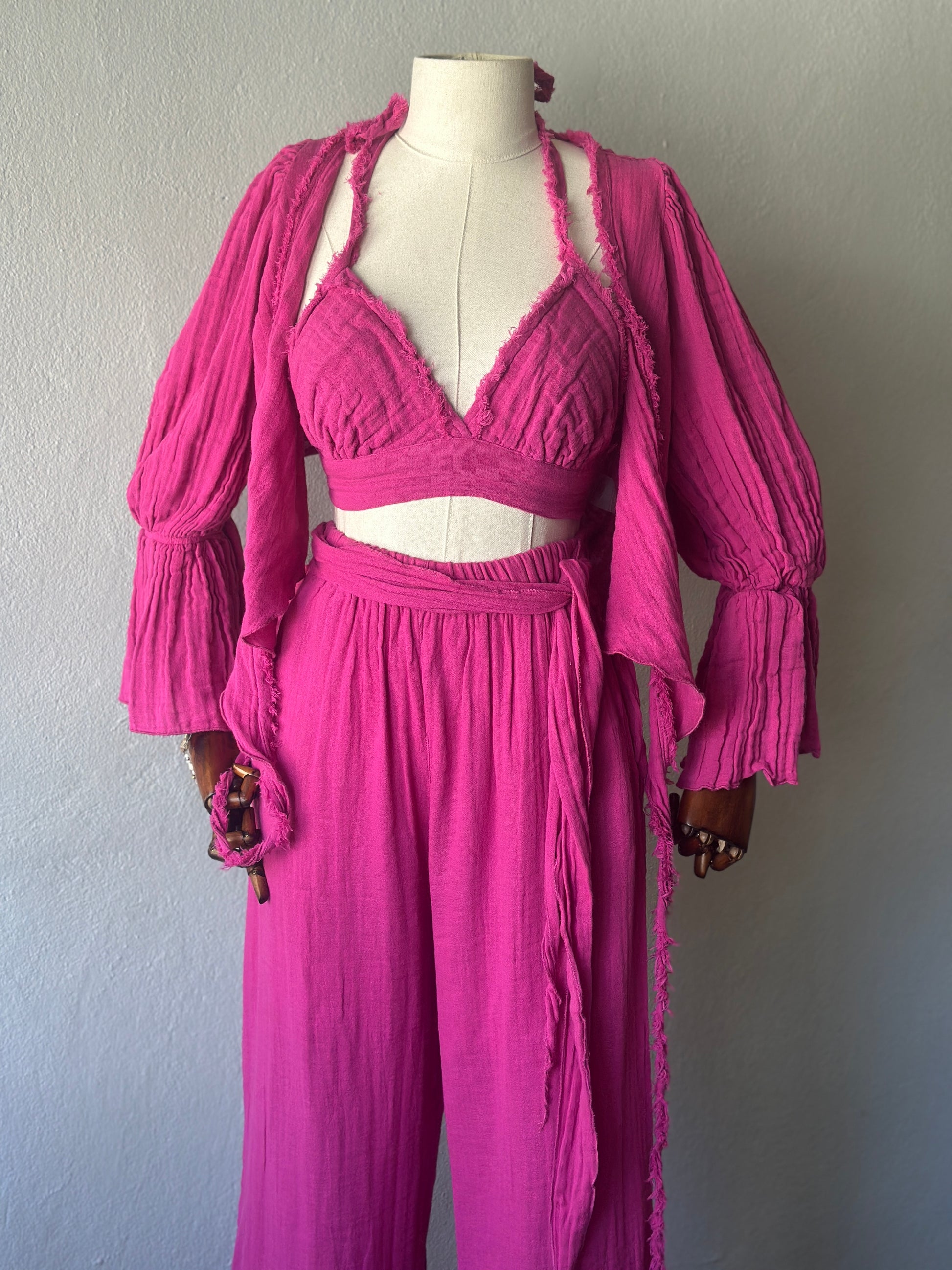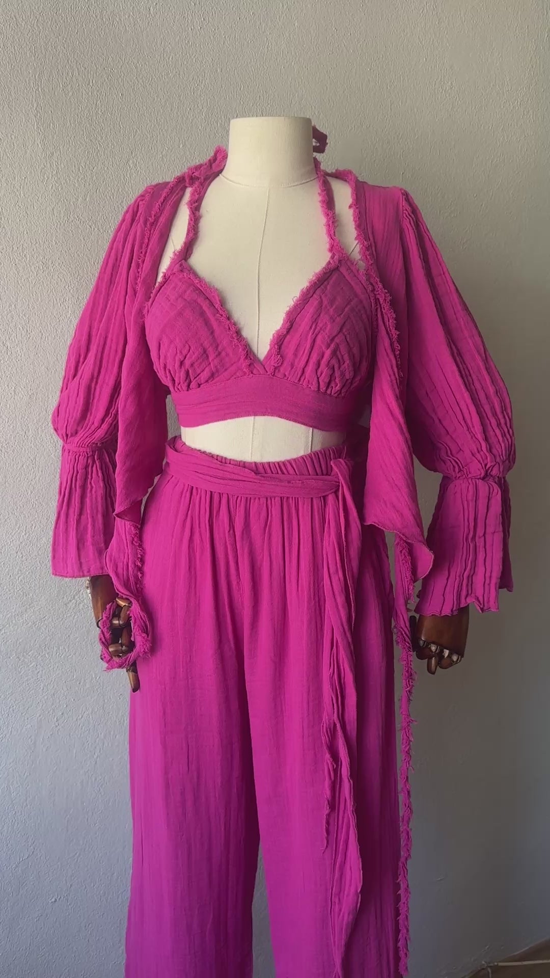 • Pantolon: Yüksek bel, bol paça ve kuşaklı tasarım ile maksimum konfor sağlar. 1(s-m) ve 2(l-xl) seçeneği mevcut