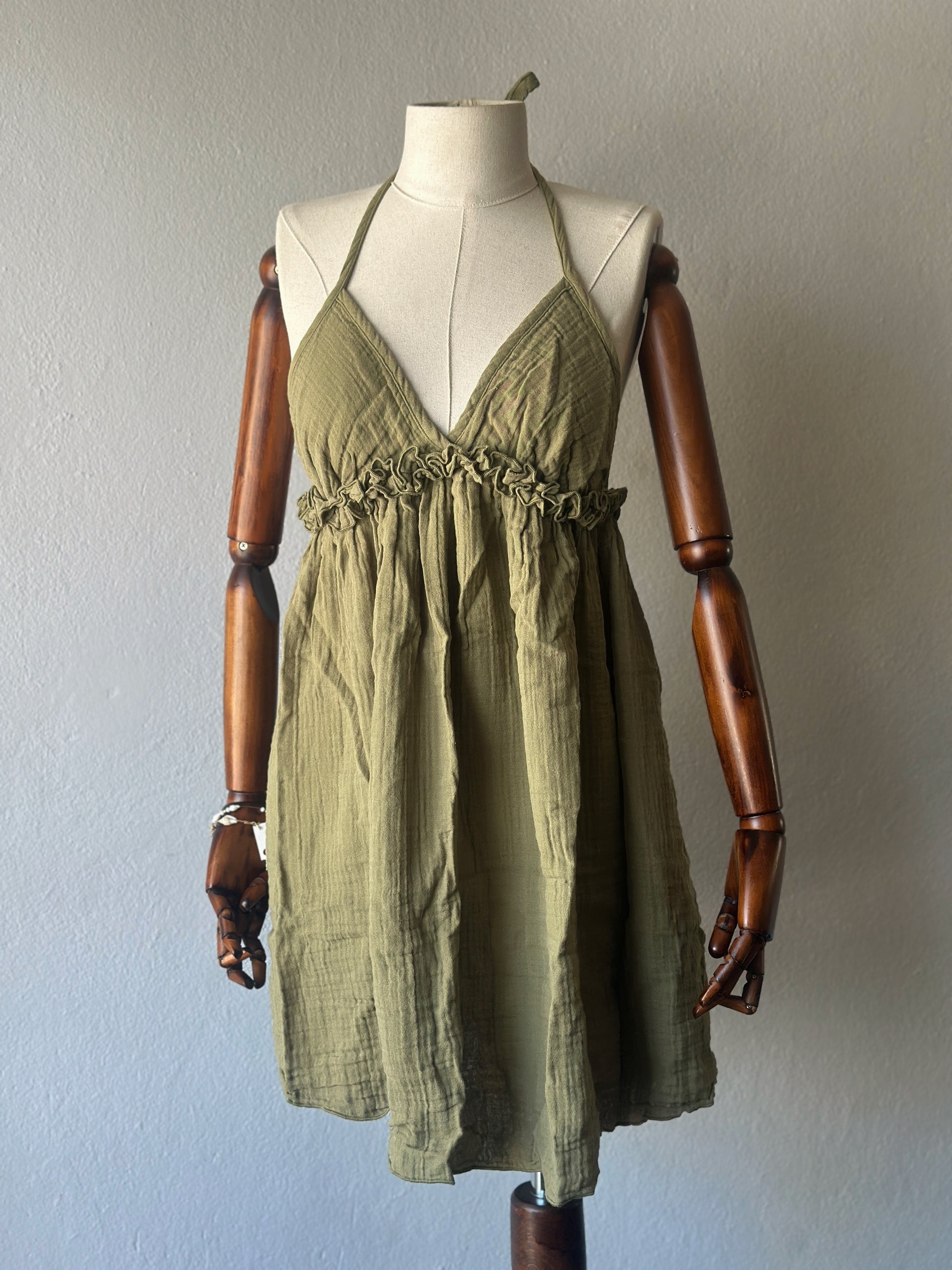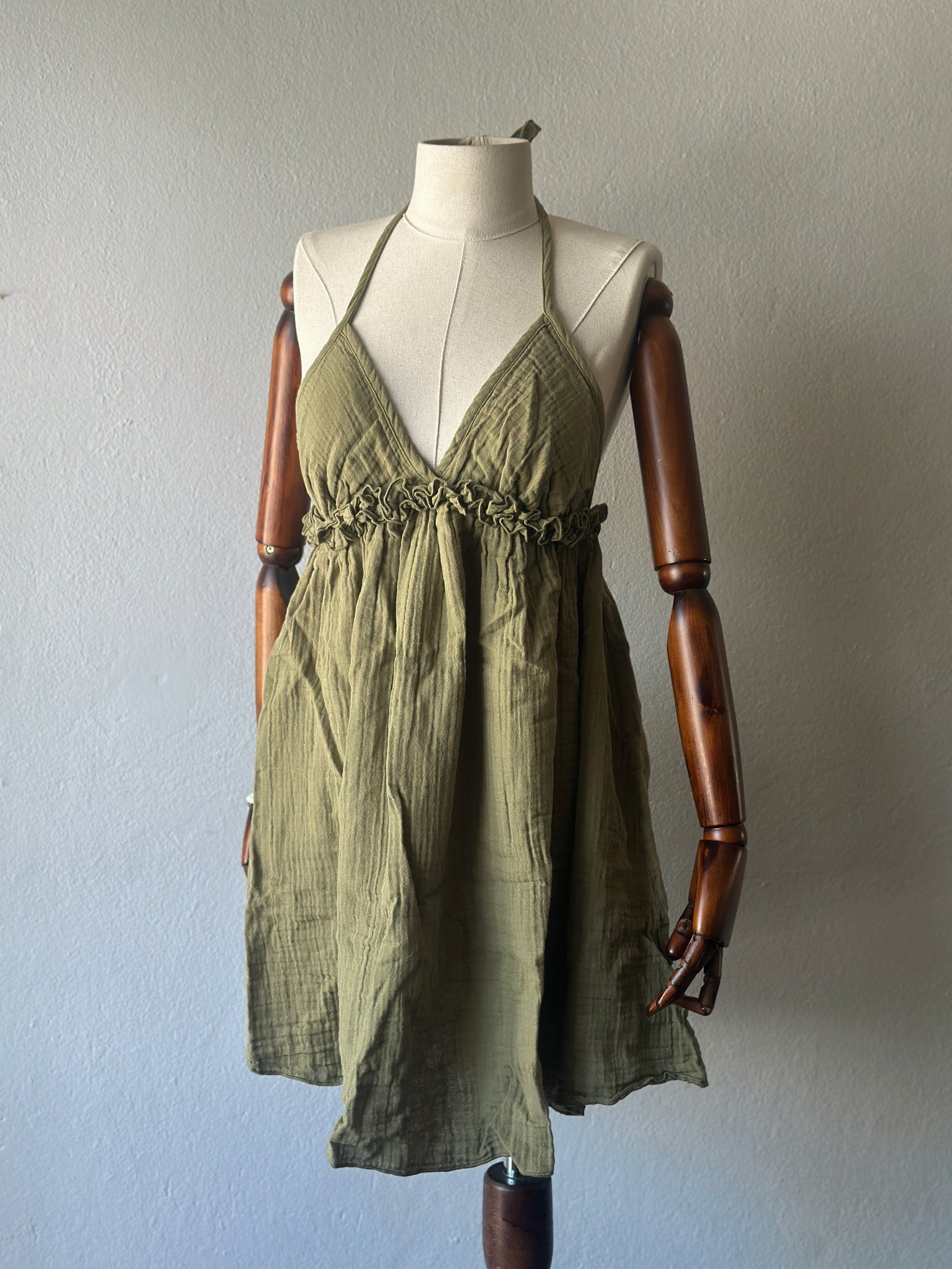 Sırt açık muslin kumaş elbise