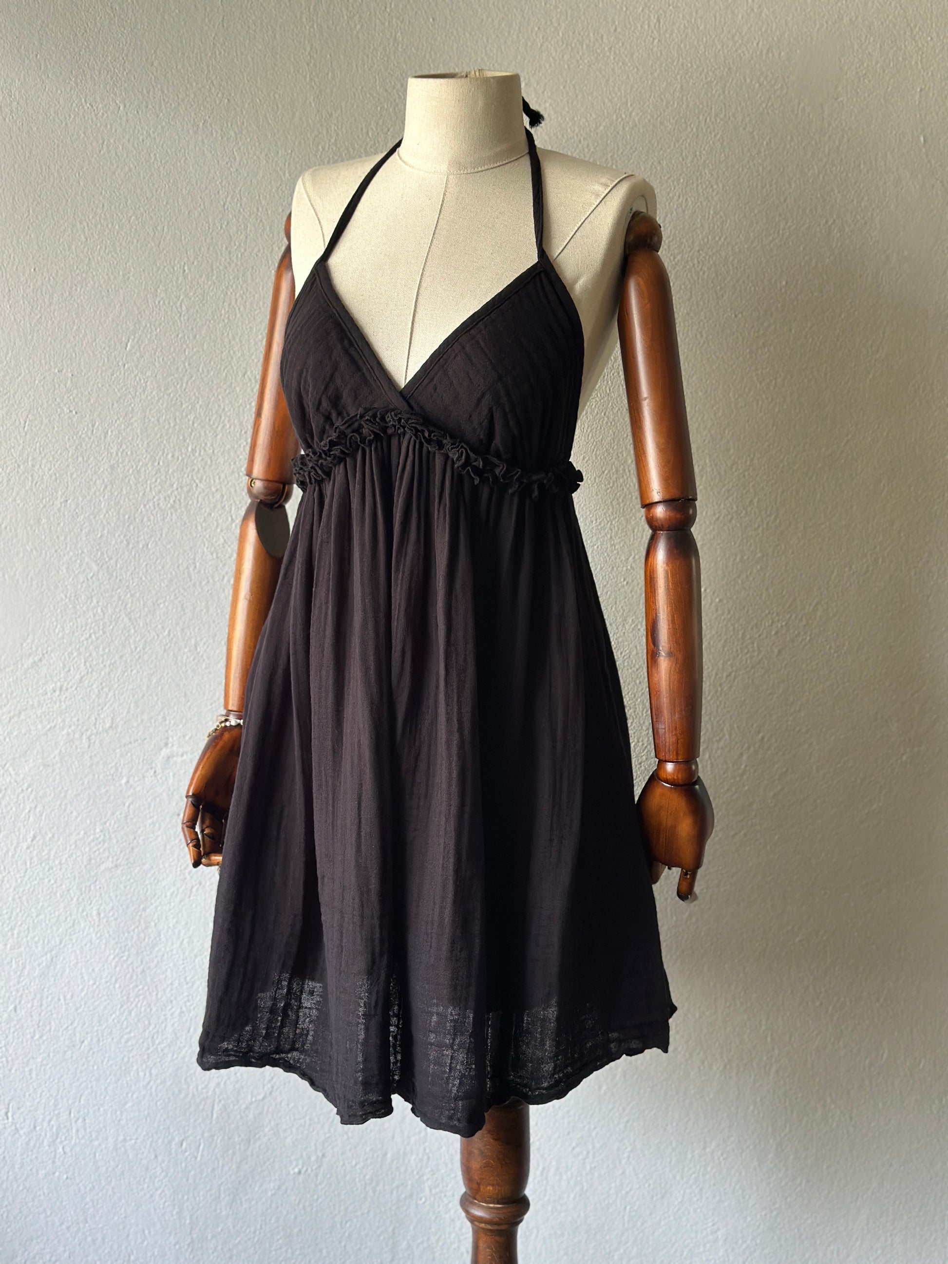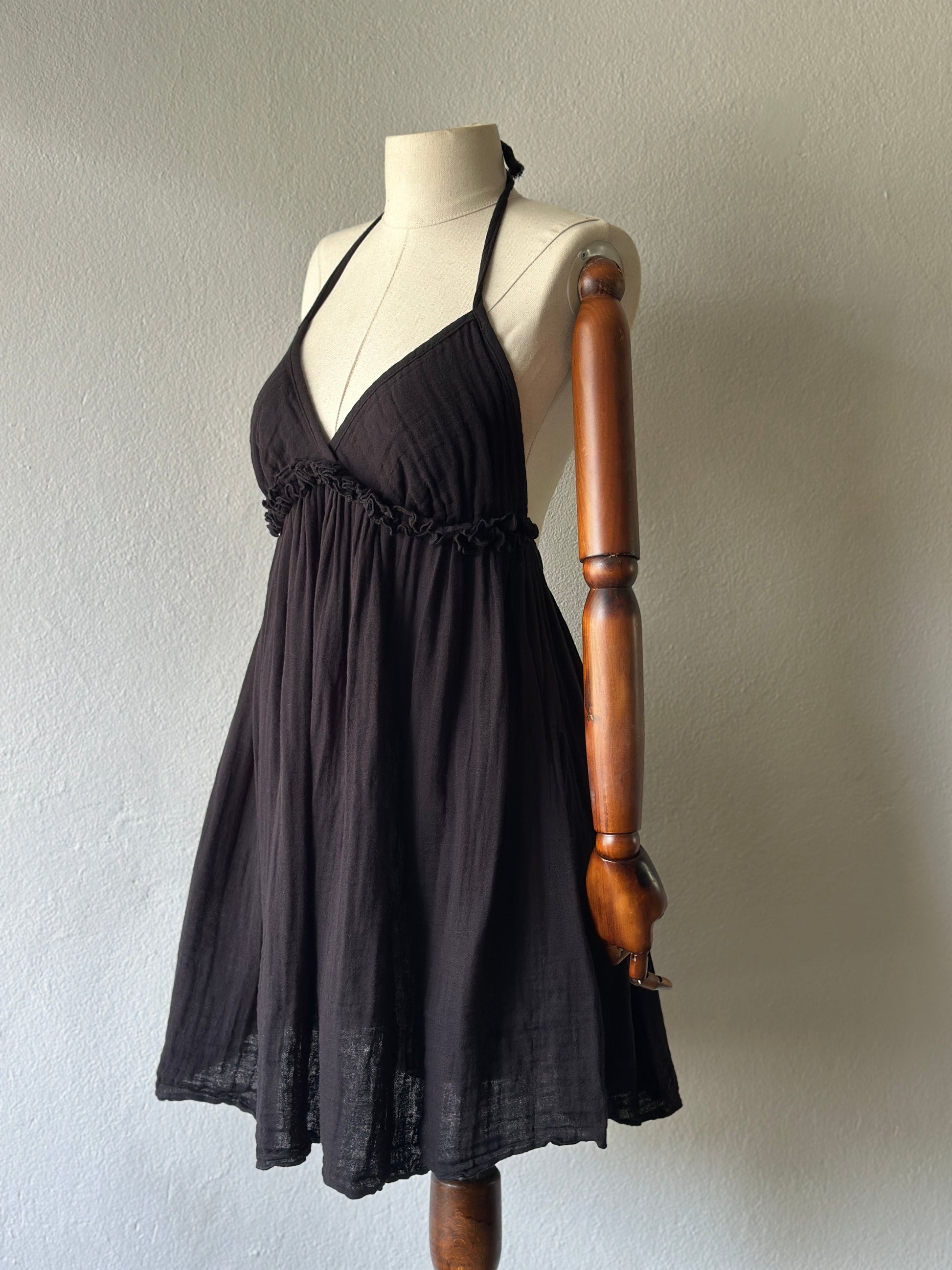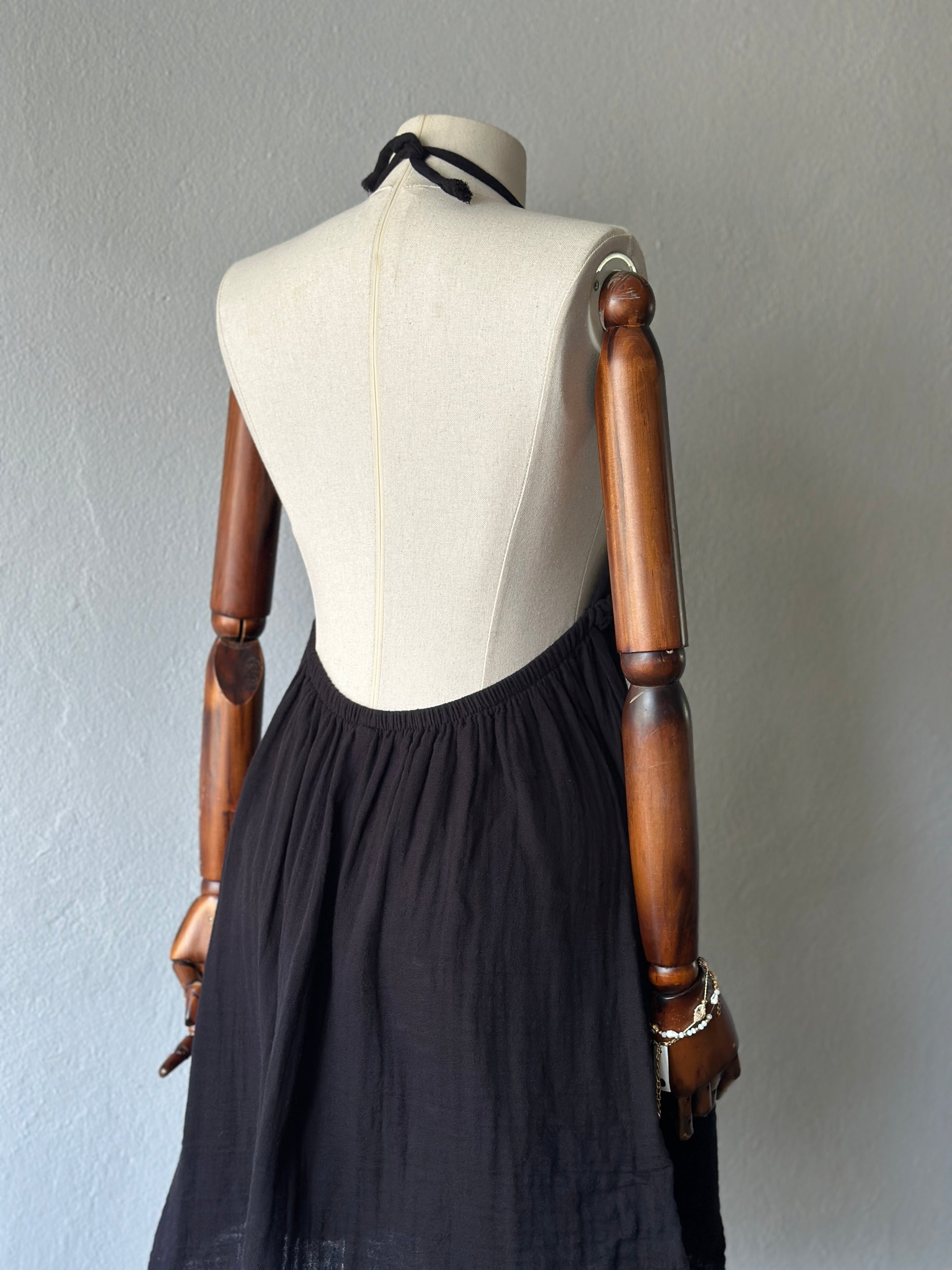Sırt Açık Muslin Kumaş Elbise - Siyah