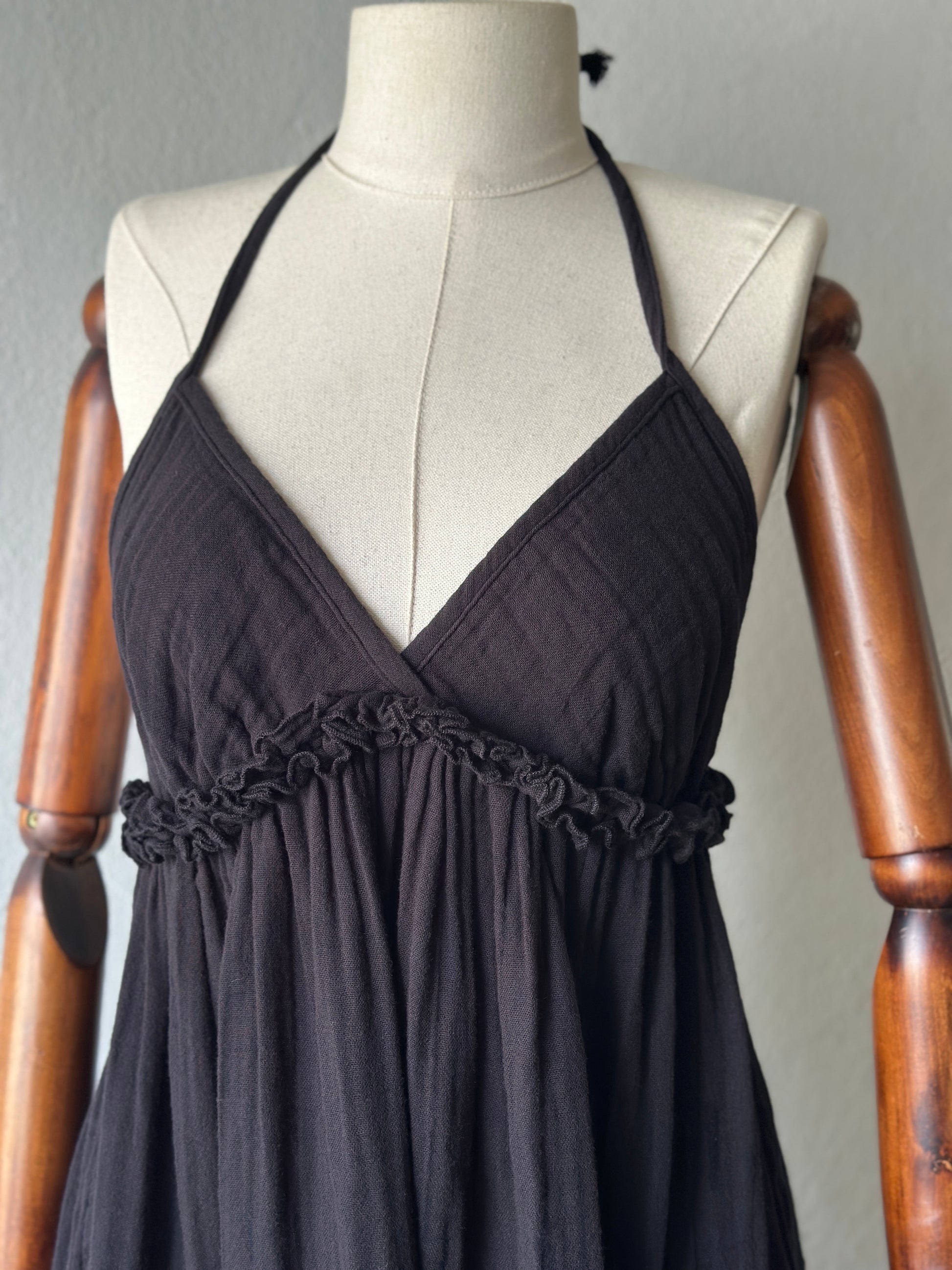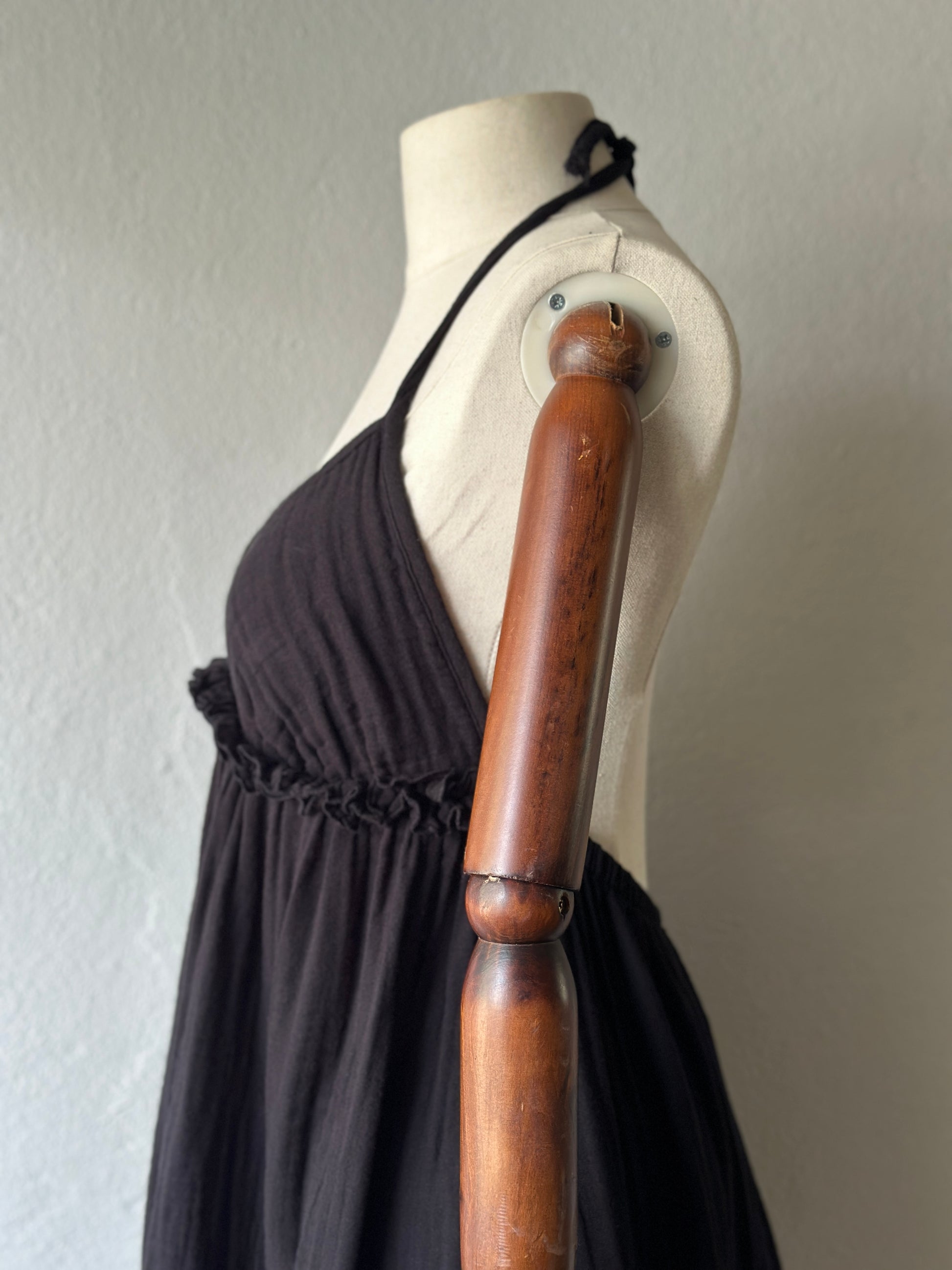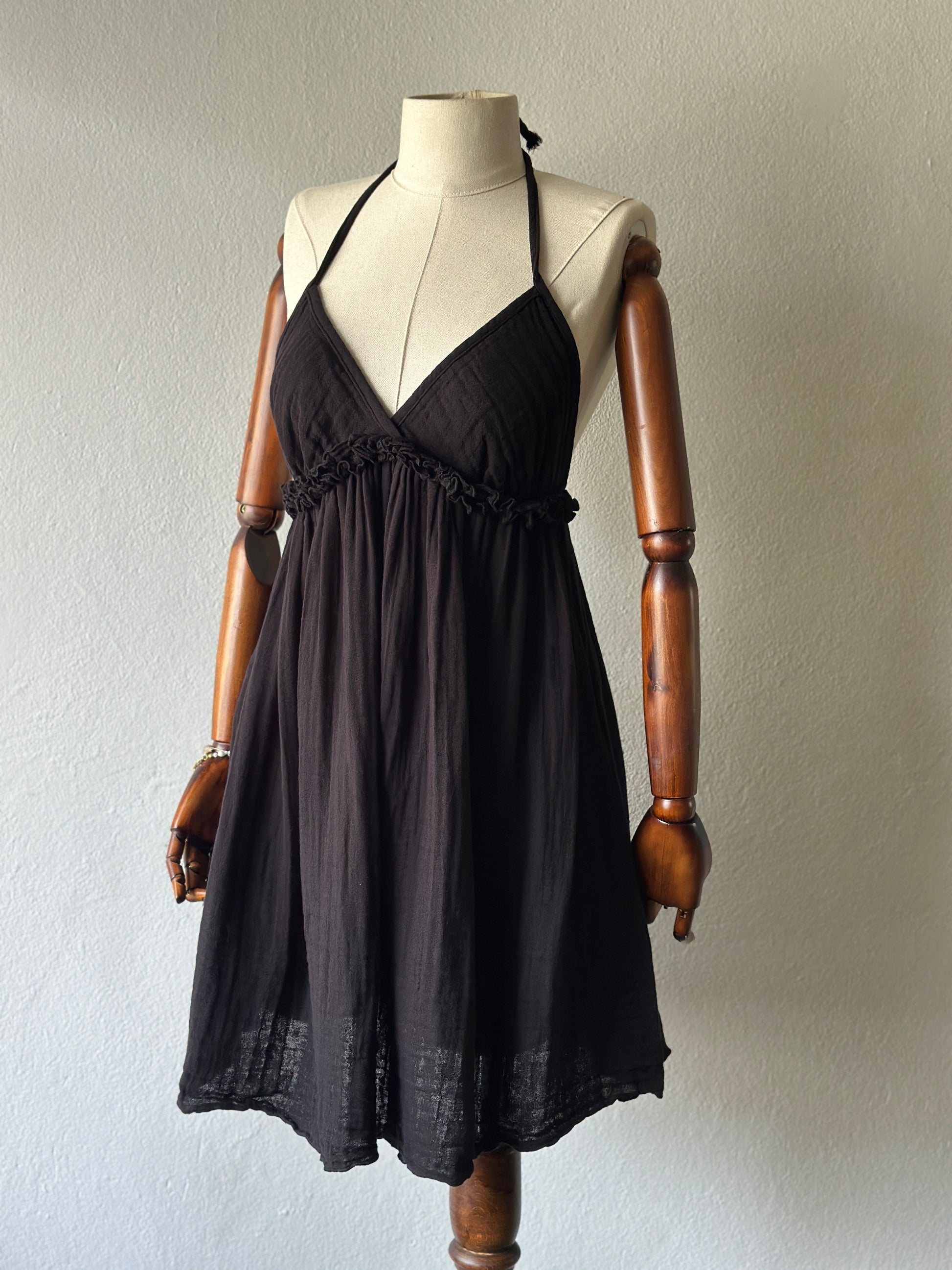 Sırt Açık Muslin Kumaş Elbise - Siyah